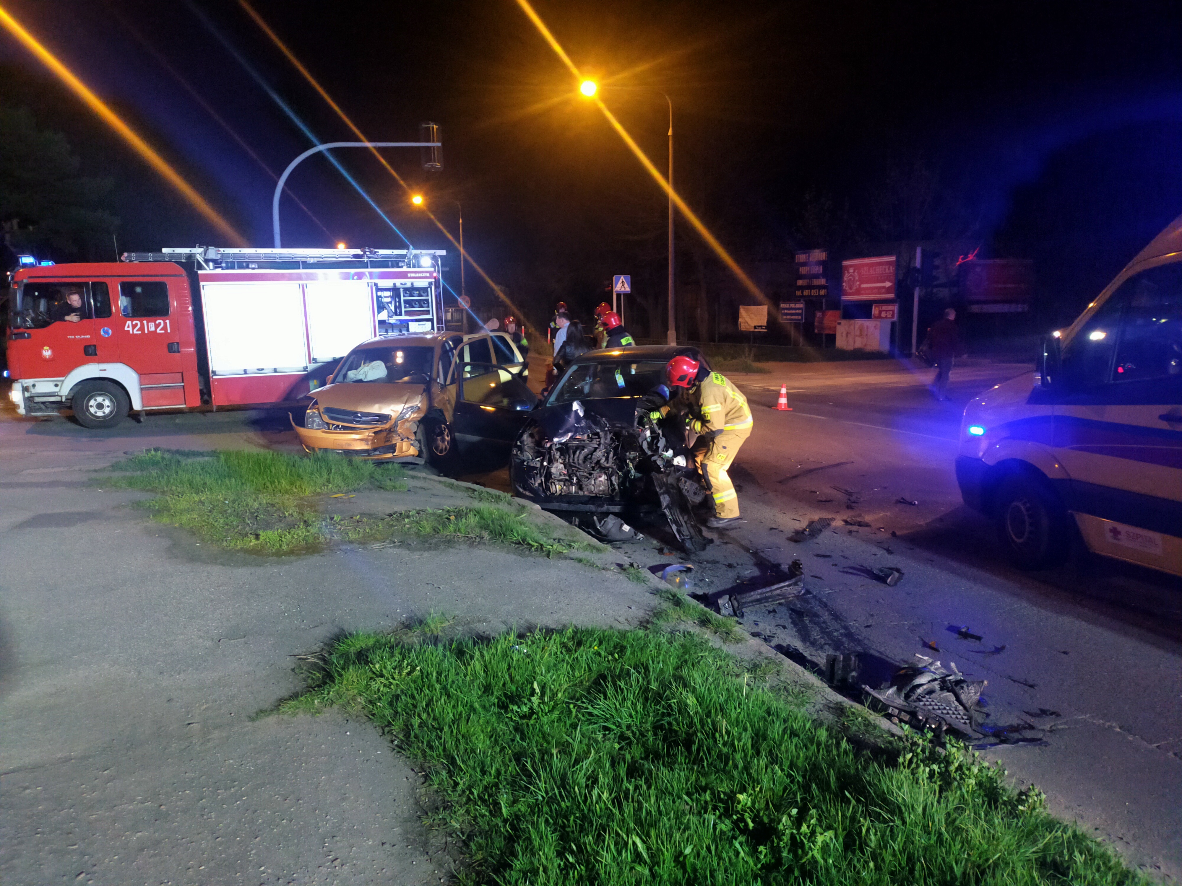 Działania Straży Pożarnej polegały na zabezpieczeniu miejsca zdarzenia, oświetleniu terenu akcji oraz udzieleniu kwalifikowanej pierwszej pomocy. Przybyły na miejsce zdarzenia ZRM zabrał jedna osobę do szpitala na SOR. Dalsze działania polegały na odłączeniu w pojazdach akumulatorów oraz sorpcji rozlanych płynów eksploatacyjnych. Na czas prowadzonych działań ruch odbywał się wahadłowo. Uszkodzone pojazdy zostały zabrane przez Auto Pomoc na parking policyjny. Dokładne okoliczności zdarzenia ustala Policja.