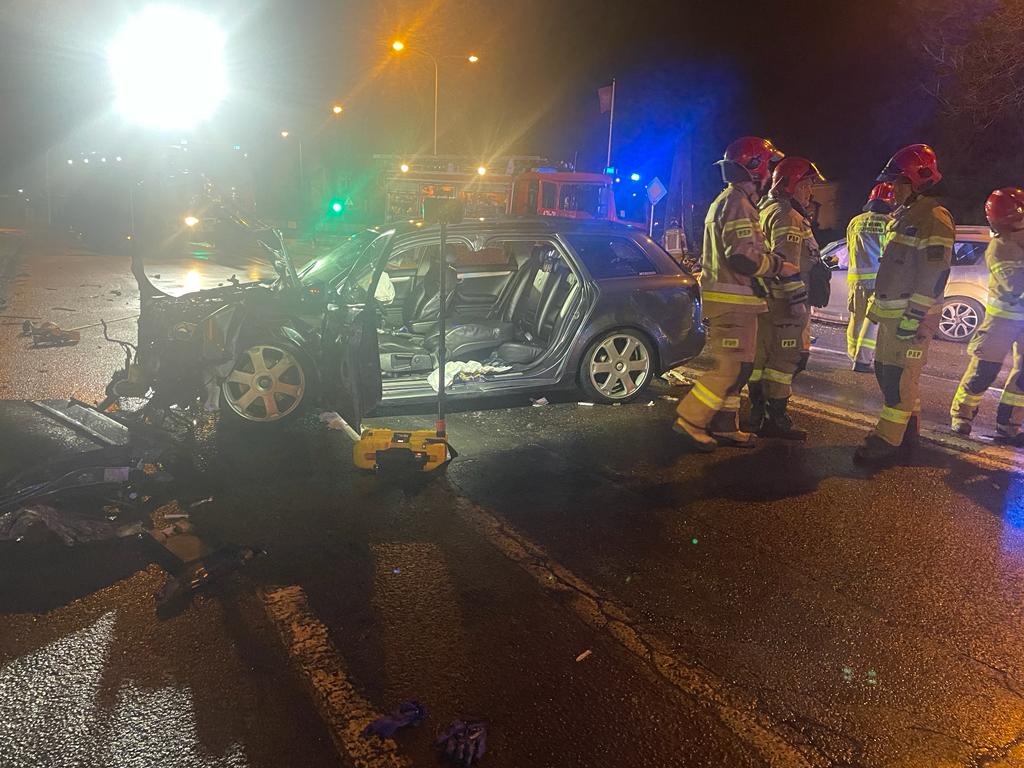 Działania Straży Pożarnej polegały na zabezpieczeniu miejsca zdarzenia, odłączeniu zasilania w pojazdach oraz udzieleniu kwalifikowanej pierwszej pomocy poszkodowanym. Po przybyciu Zespołu Ratownictwa Medycznego podjęto decyzję o wycięciu przy użyciu narzędzi hydraulicznych w jednym z uszkodzonych aut słupka B w celu bezpiecznej ewakuacji poszkodowanego kierowcy na noszach typu deska. Ratownicy medyczni przebadali uczestników zdarzenia w karetkach a następnie przetransportowali ich do szpitala. Po usunięciu pojazdów z miejsca zdarzenia strażacy zebrali rozlane płyny eksploatacyjne przy użyciu sorbentu. Dokładne okoliczności zdarzenia ustala Policja.