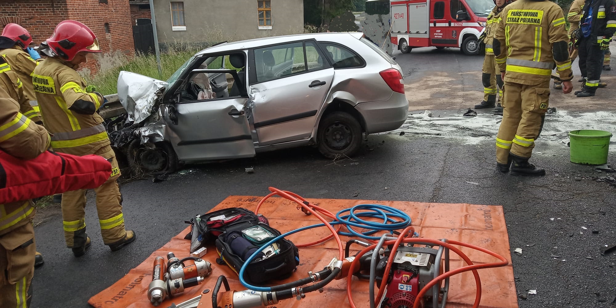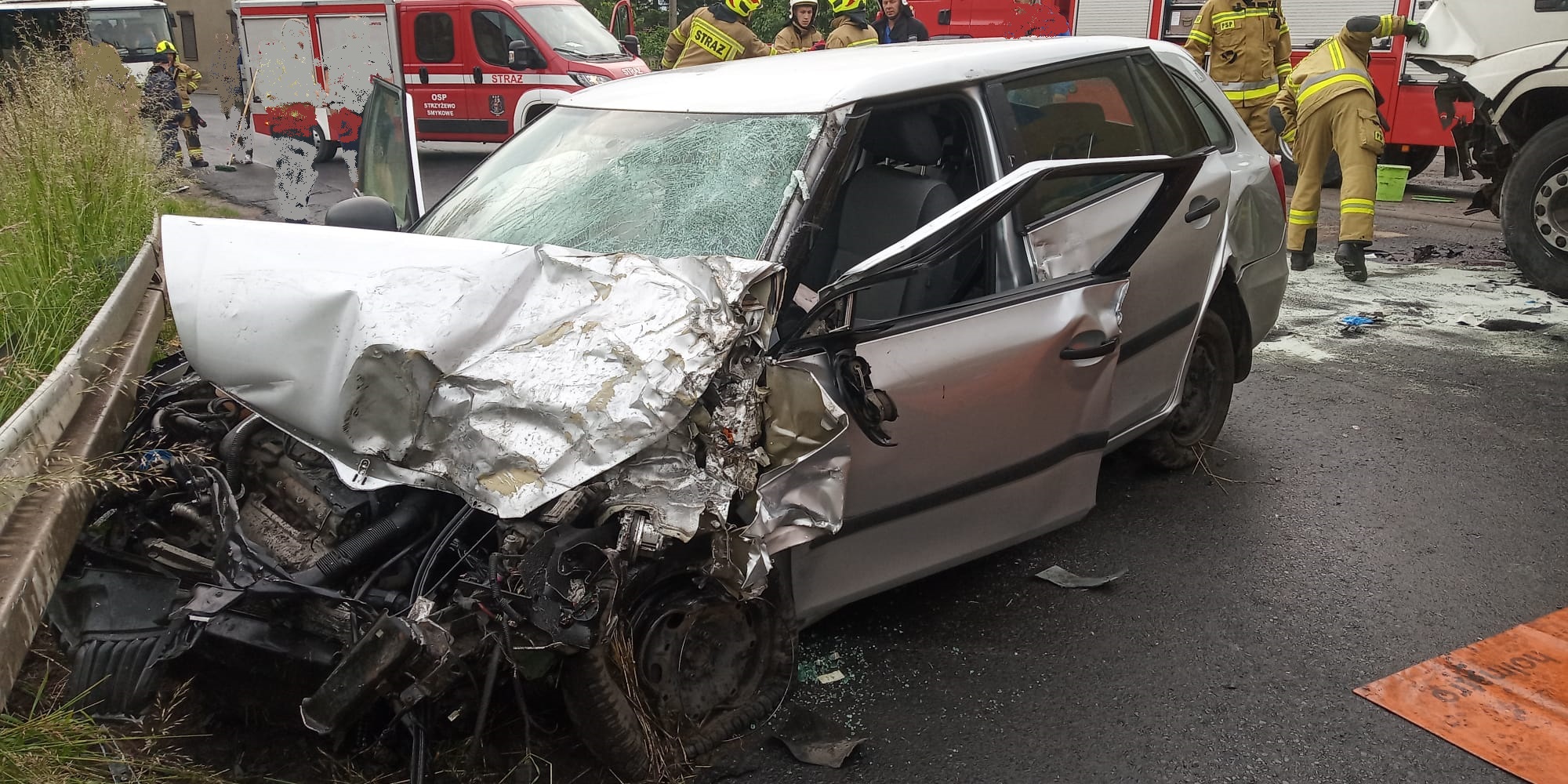 2 czerwca 2022 r. tuż przed godziną 7 do Stanowiska Kierowania Komendanta Powiatowego Państwowej Straży Pożarnej w Gnieźnie wpłynęła informacja o zderzeniu samochodu ciężarowego z samochodem osobowym w miejscowości Jankowo Dolne, gm. Gniezno. Na miejsce zdarzenia zadysponowano dwa zastępy z Jednostki Ratowniczo – Gaśniczej w Gnieźnie oraz po jednym zastępie z OSP Strzyżewo Smykowe i OSP Modliszewo. Po przybyciu na miejsce zdarzenia pierwszego zastępu zastano zderzenie czołowe samochodu ciężarowego z samochodem osobowym, do którego doszło na łuku drogi. Kierowca ciężarówki opuścił pojazd o własnych siłach, natomiast kierujący samochodem osobowym był uwięziony wewnątrz pojazdu.