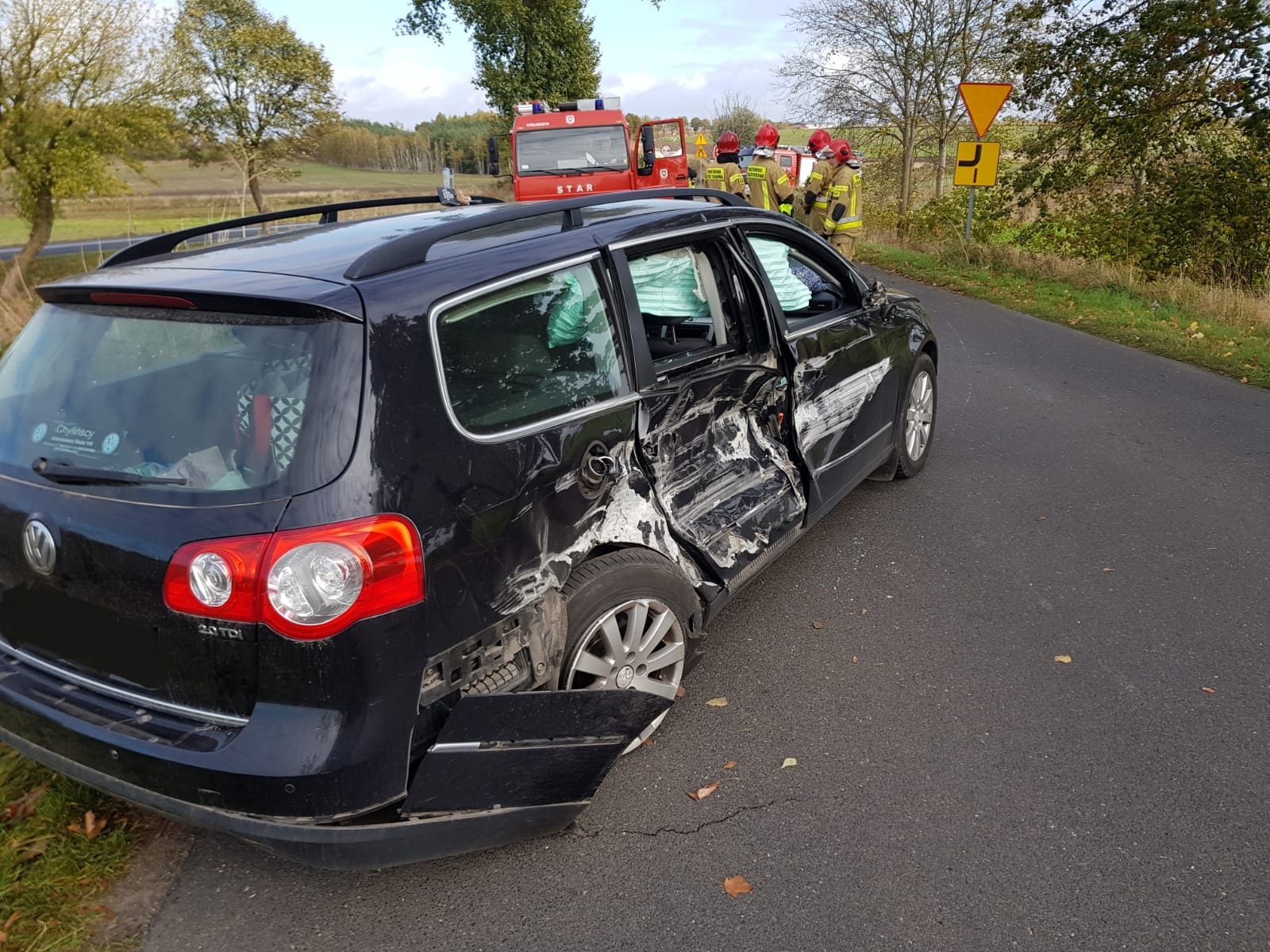 Nasze działania polegały na zabezpieczeniu miejsca zdarzenia oraz rozłączeniu akumulatora w samochodzie. Strażacy udzielili również pomocy trzem osobom będącym pod wpływem zdarzenia. Po przybyciu na miejsce zdarzenia ZRM osoby te zostały przebadane przez ratowników medycznych – nie wymagały hospitalizacji.