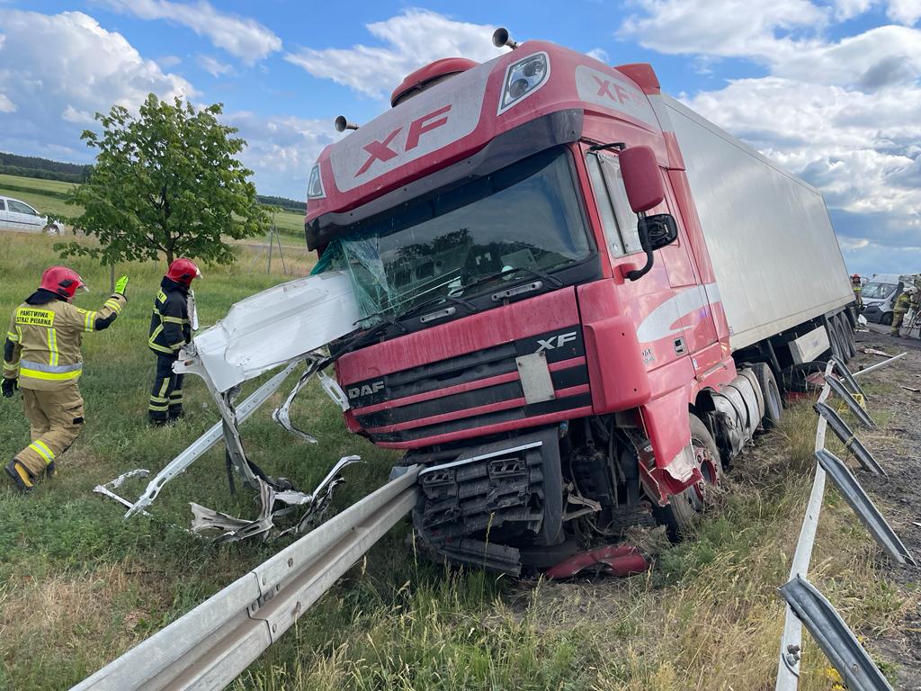 ZDERZENIE TIRA Z BUSEM NA DRODZE S5