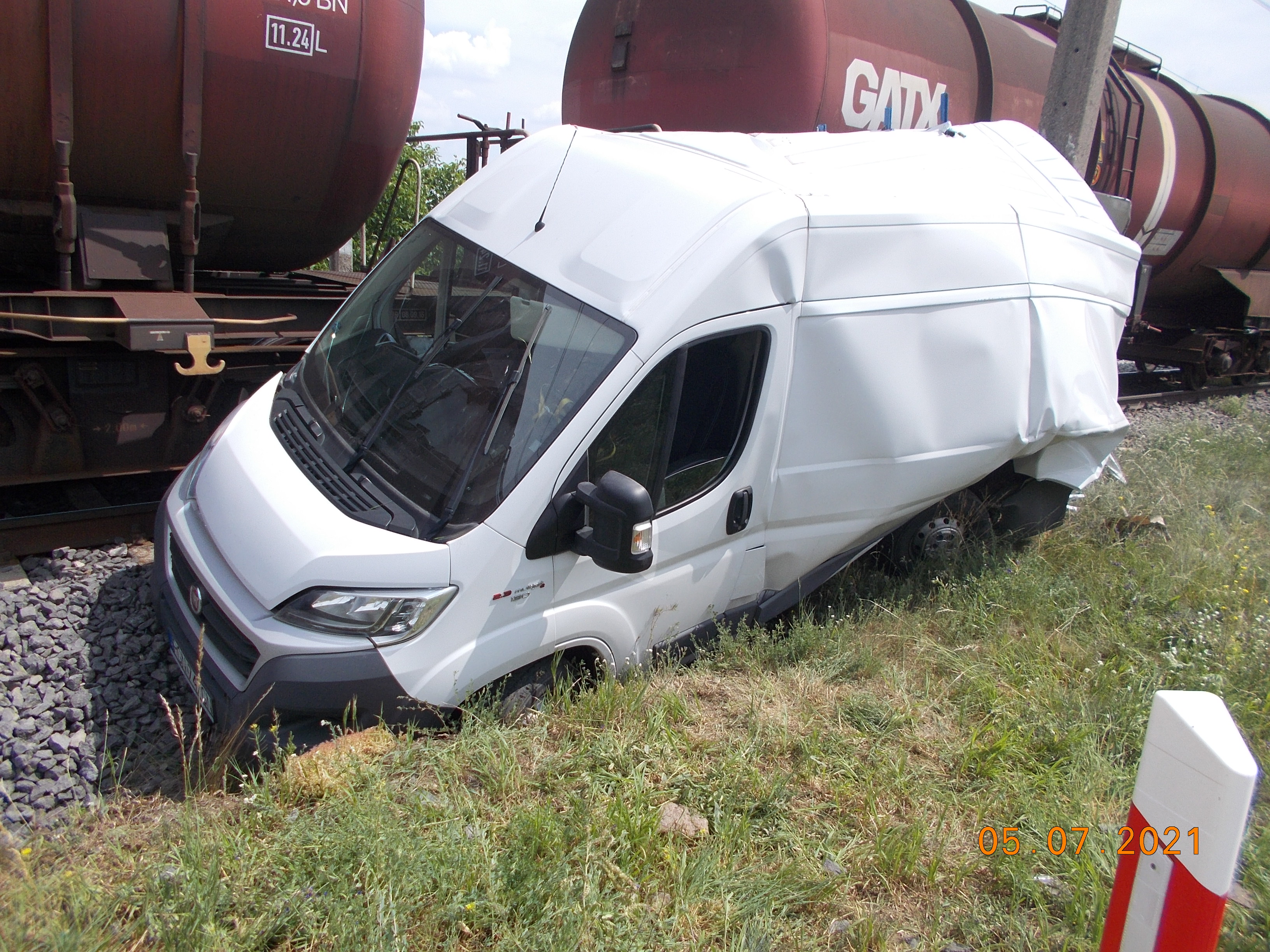 ZDERZENIE SAMOCHODU DOSTAWCZEGO Z POCIĄGIEM TOWAROWYM