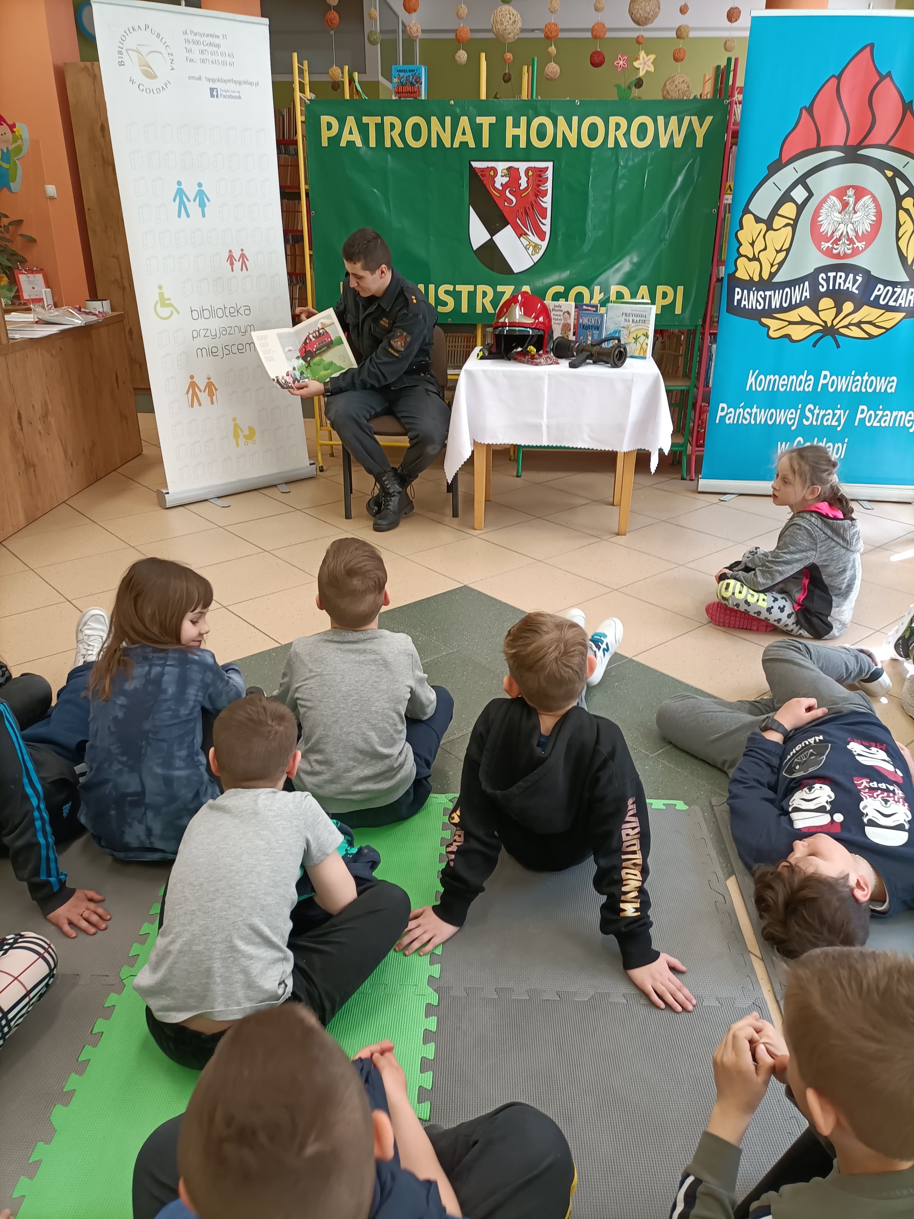 12 kwietnia 2022 roku na zaproszenie Biblioteki Publicznej w Gołdapi mł. kpt. Adrian Korotko, funkcjonariusz Komendy Powiatowej Państwowej Straży Pożarnej w Gołdapi, przeczytał fragment książki dla dzieci „Jak Wojtek został strażakiem” w ramach kampanii społecznej „Cała Polska czyta dzieciom”. Po lekturze zaznajomiono dziecięcą publiczność z tajnikami pracy strażaka oraz opowiedziano co zrobić, aby nim zostać. Wiernymi słuchaczami byli uczniowie klasy II ze Szkoły Podstawowej nr 5 im. Noblistów Polskich w Gołdapi. Po przeczytaniu bajki, każde dziecko otrzymało strażacki upominek oraz w ramach akcji pamiątkową książkę. Kampania „Cała Polska czyta dzieciom” odbywa się w ramach Patronatu Burmistrza Gołdapi Tomasza Rafała Luto.
