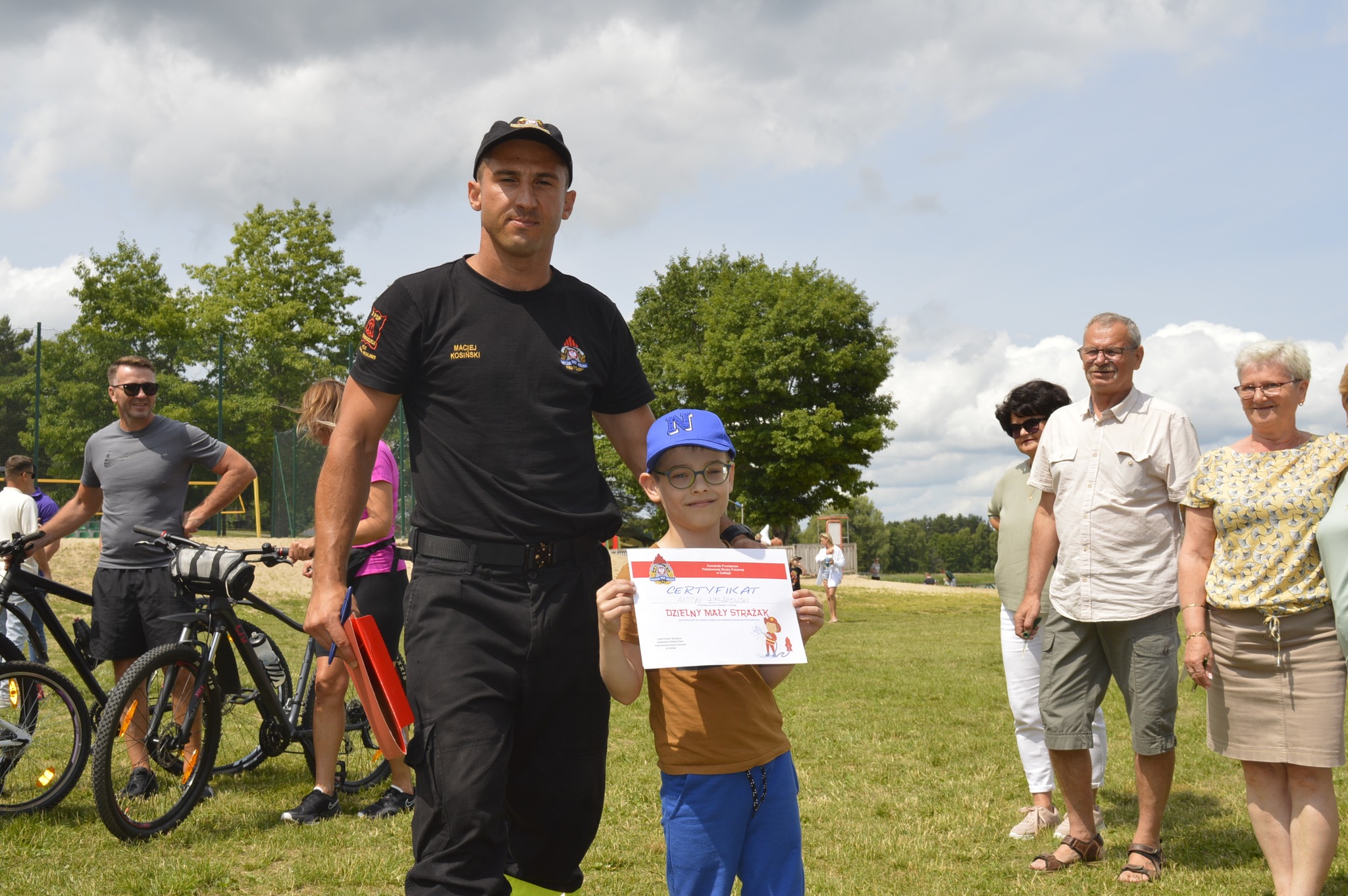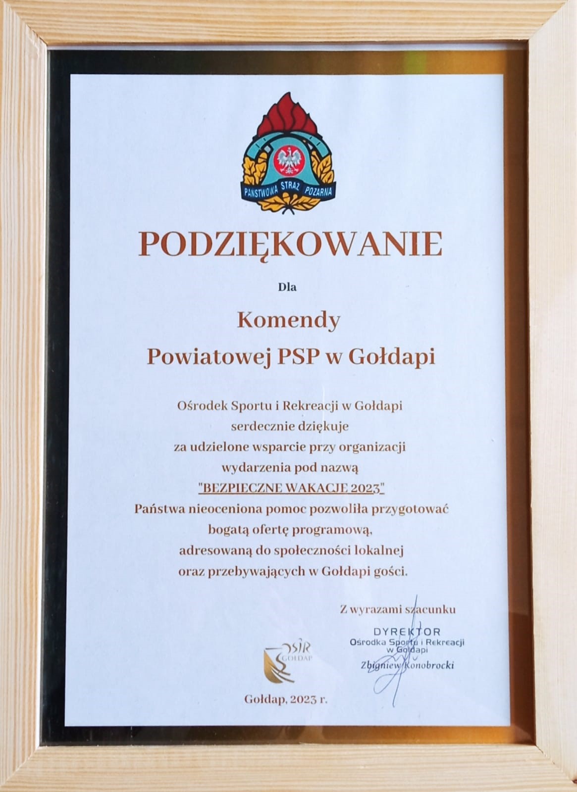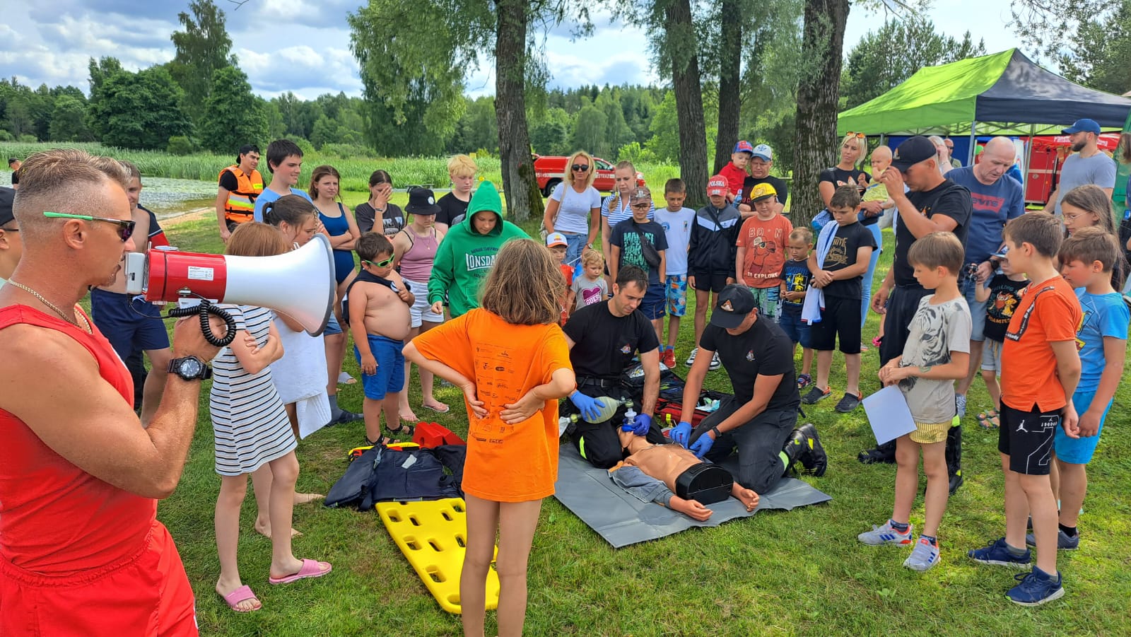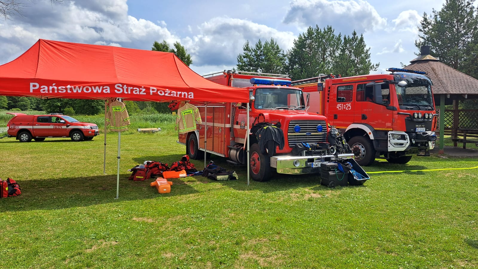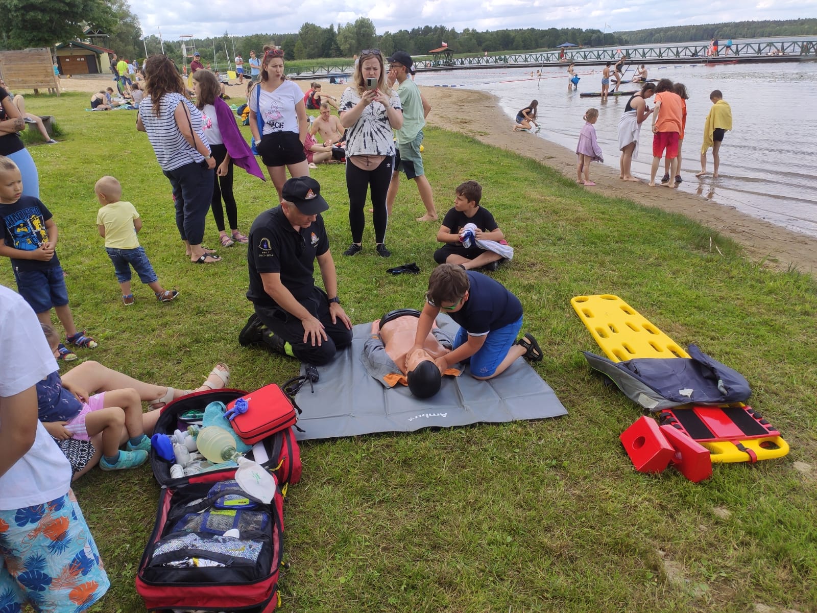 1 lipca 2023 roku na Plaży Miejskiej Ośrodka Sportu i Rekreacji w Gołdapi odbyła się (zapoczątkowana 20 czerwca br.) kolejna akcja mająca na celu m.in. przybliżenie zasad bezpiecznego zachowania się w pobliżu akwenów. Od pierwszego dnia lipca ruszyło również w tym miejscu kąpielisko. Strażacy z Komendy Powiatowej Państwowej Straży Pożarnej w Gołdapi wraz z funkcjonariuszami Specjalistycznej Grupy Ratownictwa Wodno-Nurkowego z KP PSP w Węgorzewie oraz przedstawiciele Komendy Powiatowej Policji w Gołdapi, Placówki Straży Granicznej w Gołdapi i Powiatowej Stacji Sanitarno-Epidemiologicznej w Gołdapi, edukowali na temat bezpieczeństwa oraz organizowali konkursy dla najmłodszych. W trakcie wydarzenia możliwe było zapoznanie się na wyznaczonych stoiskach z charakterem funkcjonowania każdej ze służb/inspekcji, gdzie omawiano również kwestie związane z bezpiecznym wypoczynkiem i odpowiednim postępowaniem nad wodą. Funkcjonariusze KP PSP w Gołdapi prowadzili m.in. zajęcia teoretyczne i praktyczne w zakresie zasad pierwszej pomocy medycznej oraz zaprezentowali ewakuację osoby poszkodowanej z wody na brzeg przy użyciu łodzi ratowniczej wraz z udzieleniem kwalifikowanej pierwszej pomocy.