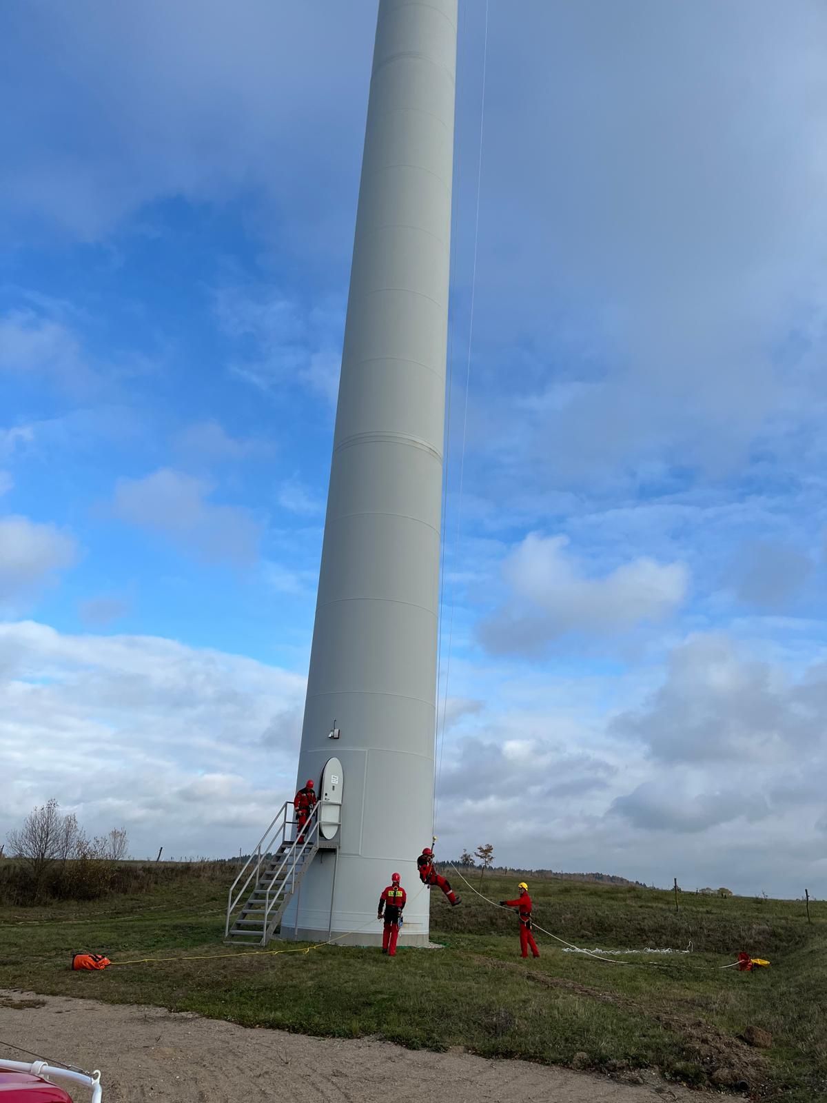 Ćwiczenia gołdapskich wysokościowców na farmie wiatrowej we Wronkach Wielkich, gm. Gołdap