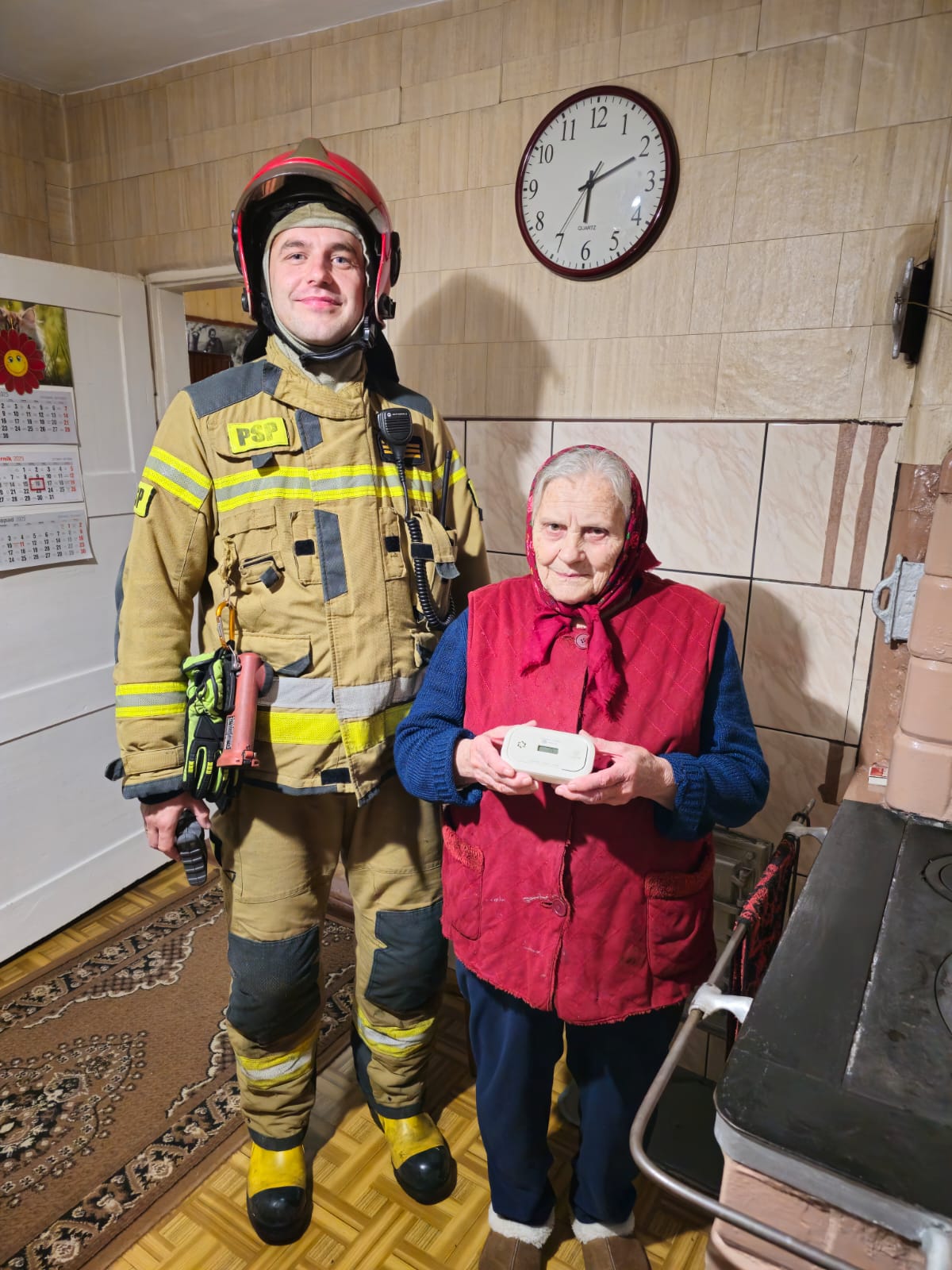 15 października 2025 roku o godz. 19:53 dyżurny stanowiska kierowania Komendanta Powiatowego Państwowej Straży Pożarnej w Gołdapi otrzymał zgłoszenie o uruchomieniu się czujki tlenku węgla (CO) w budynku mieszkalnym w miejscowości Skaliszkiejmy, gm. Banie Mazurskie. Po przybyciu na miejsce zdarzenia jednostek ochrony przeciwpożarowej i dokonaniu przez strażaków sprawdzenia wszystkich pomieszczeń przy użyciu przyrządów pomiarowych nie wykryto obecności czadu (przewietrzenie obiektu przez domowniczkę po wezwaniu służb ratowniczych). W wyniku dalszego rozpoznania ustalono, że podczas rozpalania w piecach mogło dojść do uwolnienia dymu przez płytę kuchni kaflowej, a brak wietrzenia mógł być przyczyną uruchomienia się czujki CO. Po ponownym zmierzeniu parametrów w budynku, detektor również nie stwierdził występowania tlenku węgla.