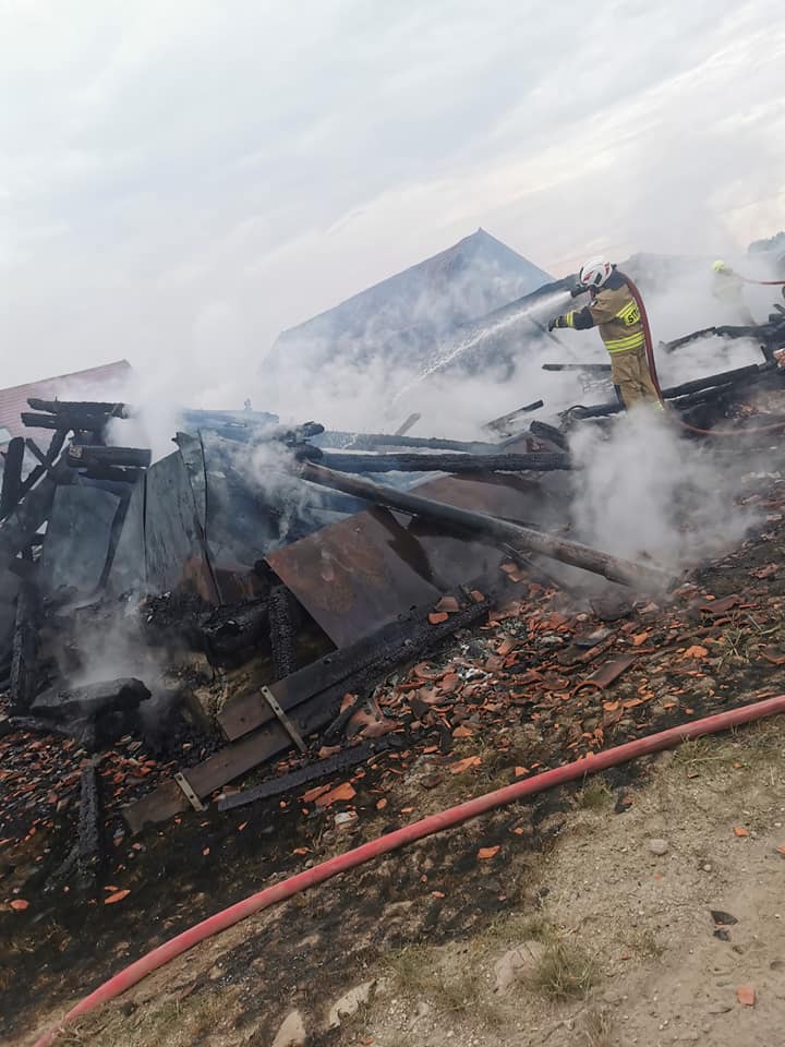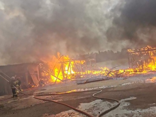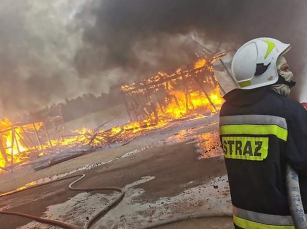 Duży pożar budynku inwentarskiego i obiektów gospodarczych w Sokołach – powiat gołdapski