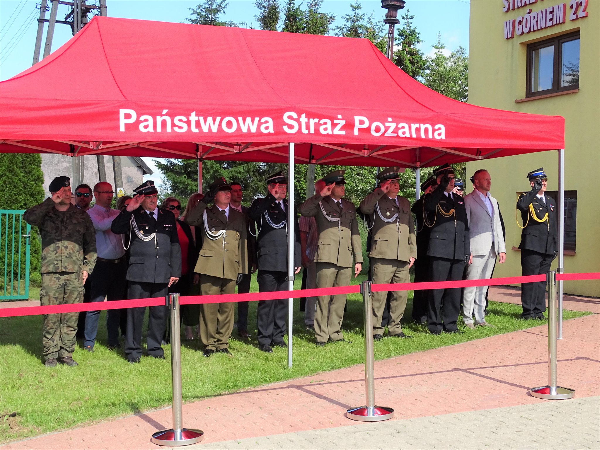 Uroczysty apel rozpoczęło złożenie przez dowódcę uroczystości dh. Sławomira Ziółkowskiego meldunku Zastępcy Warmińsko–Mazurskiego Komendanta Wojewódzkiego Państwowej Straży Pożarnej st. bryg. Tomasza Ostrowskiego o gotowości pododdziału pożarniczego do uroczystości. Następnie przy akompaniamencie hymnu państwowego podniesiono flagę Rzeczypospolitej Polskiej na maszt. Później głos zabrał Prezes OSP w Górnem dh Kazimierz Kazaniecki, który m.in. przywitał zaproszonych gości oraz nawiązując do przypadającego w tym roku jubileuszu 70–lecia Ochotniczej Straży Pożarnej w Górnem, przybliżył historię jednostki.