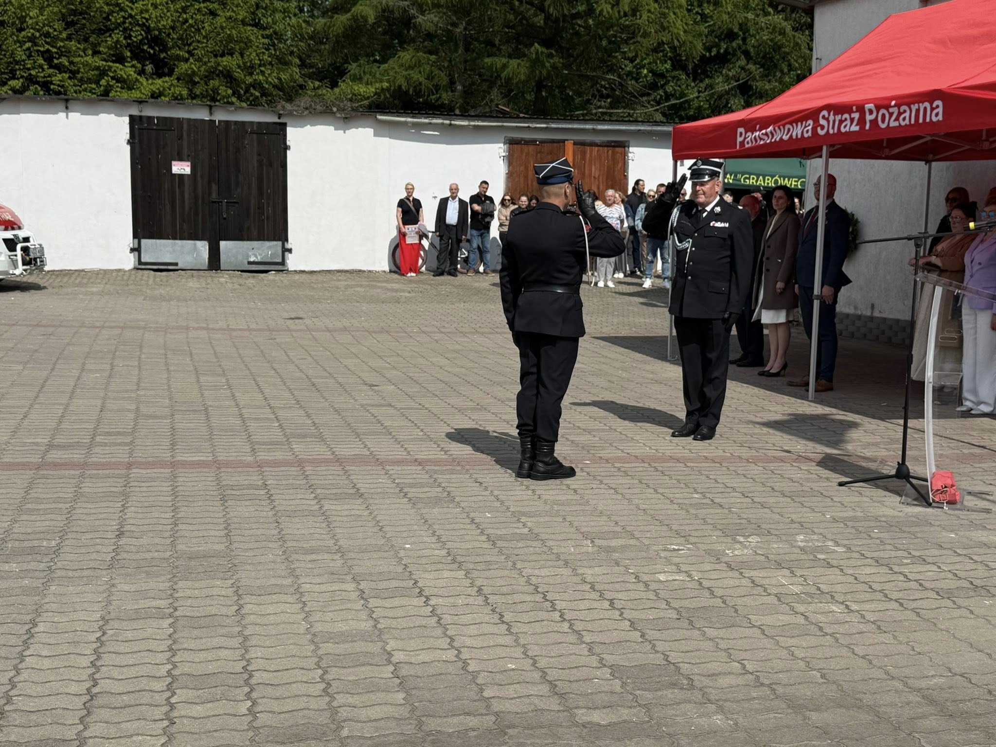Uroczysty apel rozpoczęło złożenie przez dowódcę uroczystości dh. Andrzeja Jabłońskiego meldunku Prezesowi Zarządu Oddziału Powiatowego ZOSP RP w Gołdapi dh. Andrzejowi Ciołkowi o gotowości pododdziału pożarniczego do uroczystości. Następnie przy akompaniamencie hymnu państwowego podniesiono flagę Rzeczypospolitej Polskiej na maszt. Później głos zabrał Prezes OSP w Grabowie dh Tomasz Popławski, który m.in. przywitał zaproszonych gości oraz nawiązując do przypadającego w tym roku jubileuszu 75-lecia Ochotniczej Straży Pożarnej w Grabowie, przybliżył historię jednostki. W swoim wystąpieniu Prezes nawiązał również do 30. rocznicy powstania Krajowego Systemu Ratowniczo-Gaśniczego. Następnie dokonano wręczenia odznaczeń i wyróżnień.