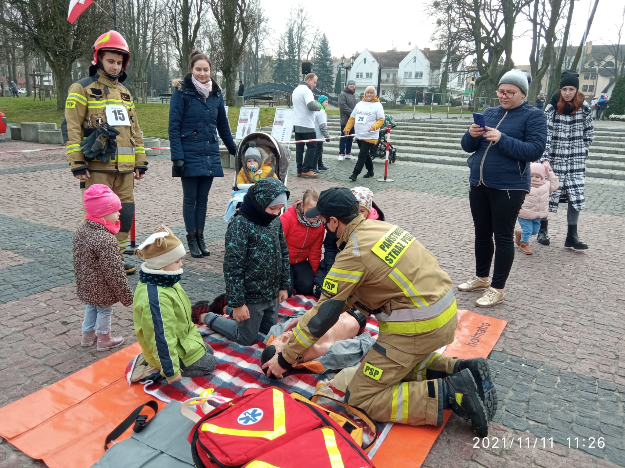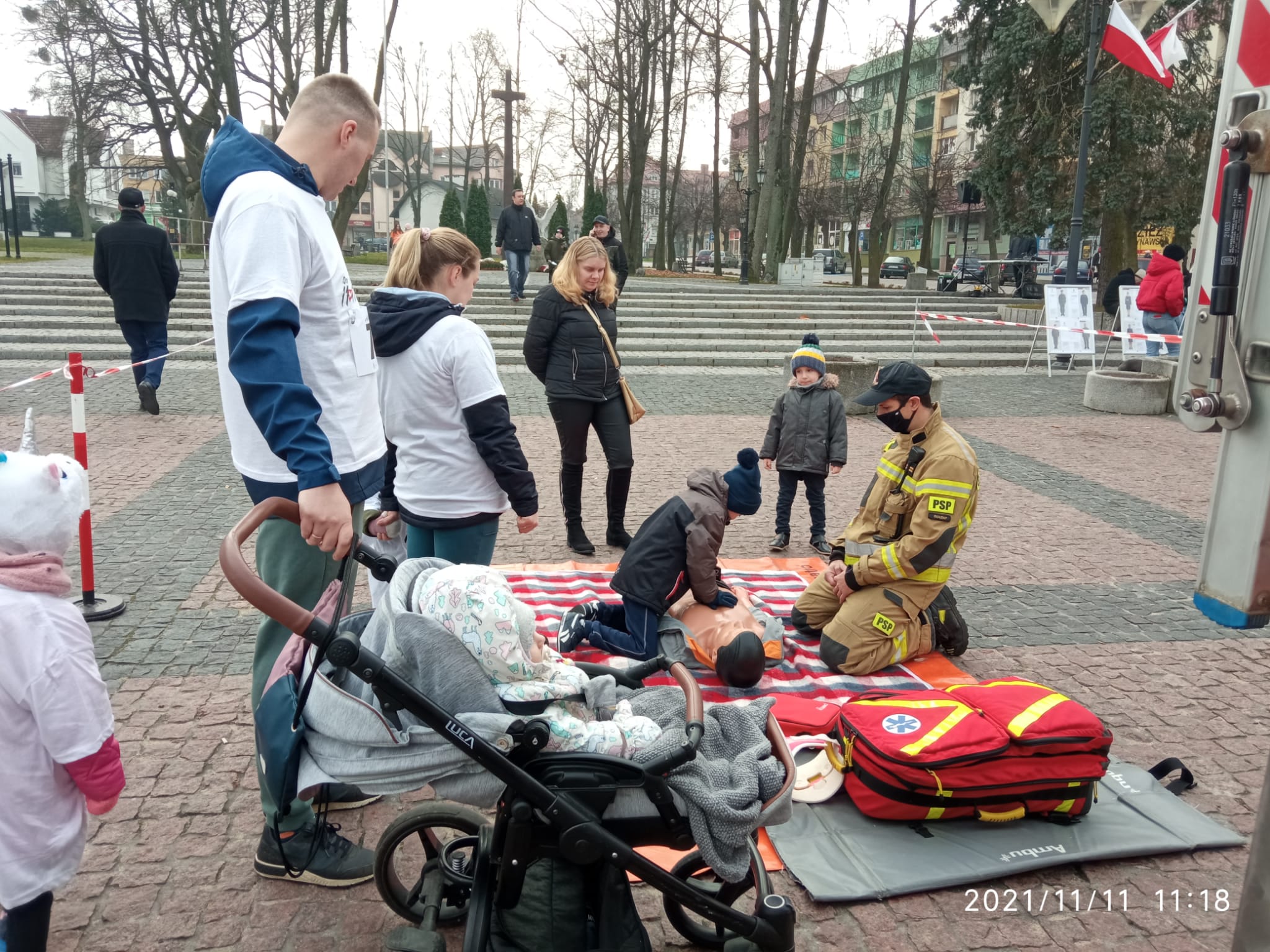 11 listopada 2021 roku gołdapscy strażacy wzięli udział w szeregu przedsięwzięć, które uczciły obchody Narodowego Święta Niepodległości. Podczas uroczystej zmiany służby w Komendzie Powiatowej Państwowej Straży Pożarnej w Gołdapi podniesiono flagę Rzeczypospolitej Polskiej na maszt i odśpiewano Mazurka Dąbrowskiego. W ramach obchodów organizowanych na Placu Zwycięstwa w Gołdapi, strażacy prowadzili pogadanki i ćwiczenia dot. udzielania pierwszej pomocy medycznej, które cieszyły się sporym zainteresowaniem ze strony osób przybyłych na uroczystość, w tym dzieci. Przedstawiciele KP PSP w Gołdapi o godz. 11:11 uczestniczyli również w jedenastej edycji sztafety „11.11.11.11.11”, będącej wyjątkowym typem wydarzenia kulturalnego promującym nowoczesną formę patriotyzmu i wolontariat angażujący i integrujący całą społeczność lokalną, ukazujący alternatywny sposobu spędzenia wolnego czasu. W ramach akcji „Niepodległa dla hymnu” o godz. 12:00 pod Pomnikiem Niepodległości w Gołdapi, funkcjonariusze wspólnie z mieszkańcami miasta oraz przedstawicielami władz samorządowych i innych służb zaśpiewali hymn państwowy. Podczas dalszej części obchodów 103. rocznicy odzyskania przez Polskę Niepodległości organizowanej w Gołdapi, Komendant Powiatowy Państwowej Straży Pożarnej w Gołdapi st. bryg. Wojciech Szczepanik wziął udział we Mszy Świętej w intencji Ojczyzny oraz uroczystym odśpiewaniu hymnu i podniesieniu flagi państwowej na Placu Zwycięstwa, a także wspólnie z przedstawicielami innych służb złożył kwiaty pod Pomnikiem Niepodległości.