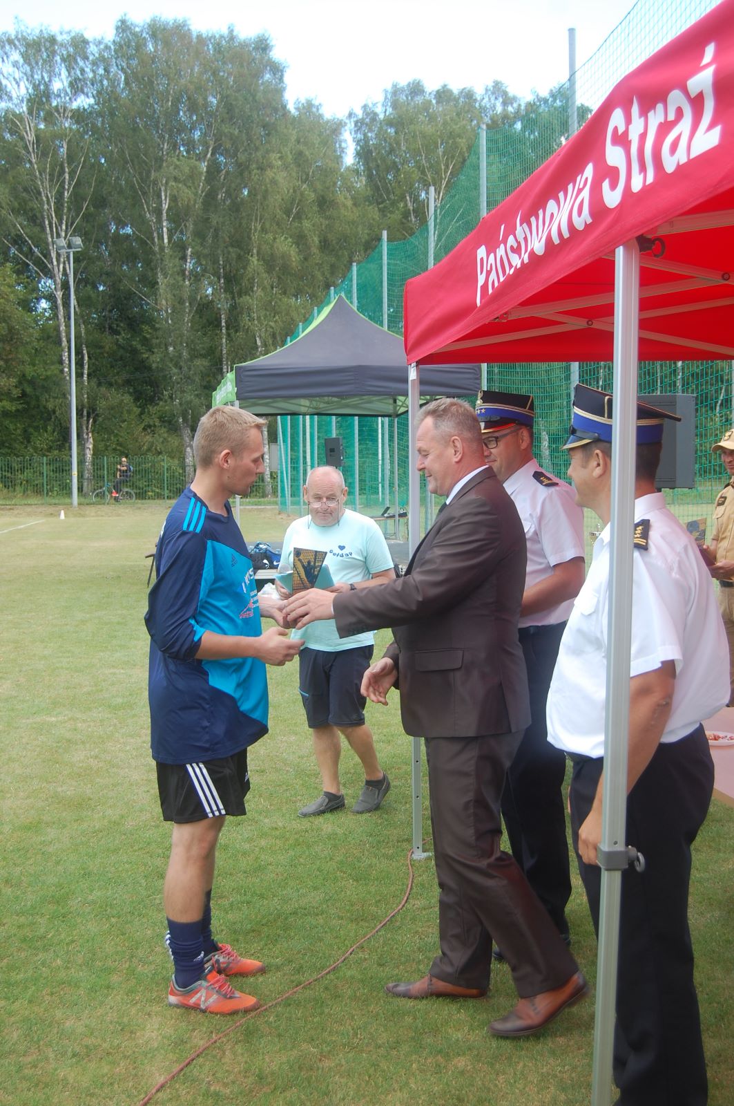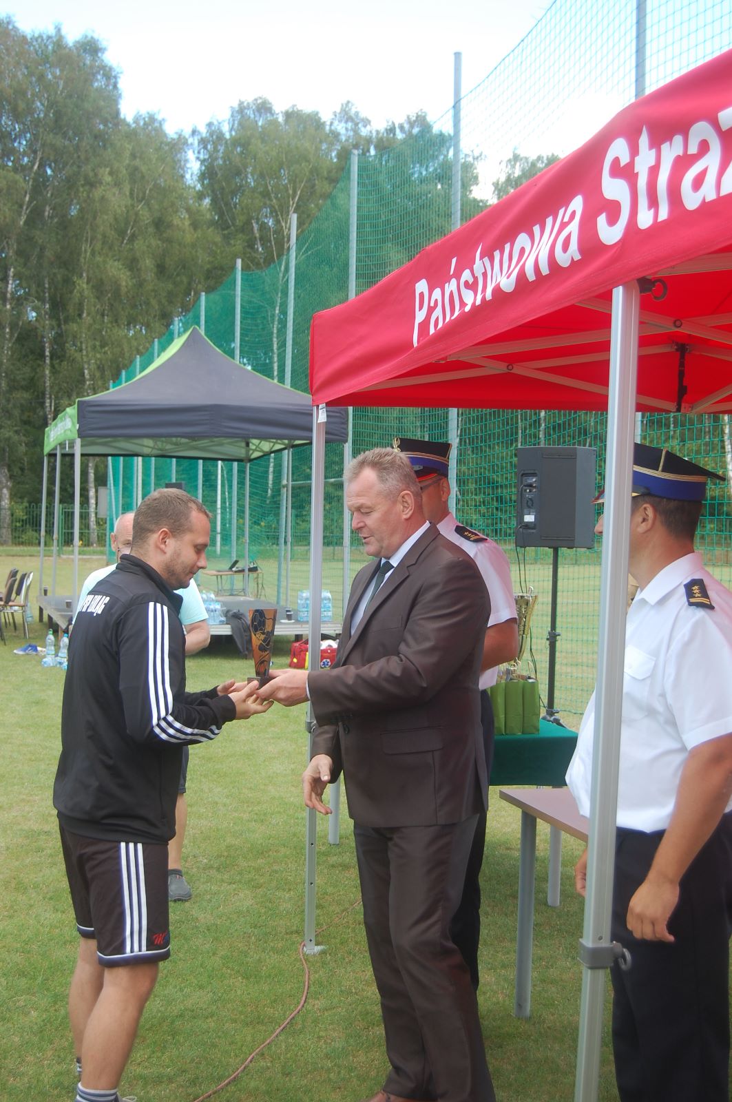 Puchary, medale, statuetki i pamiątkowe dyplomy wręczał strażakom Zastępca Warmińsko–Mazurskiego Komendanta Wojewódzkiego PSP st. bryg. Tomasz Ostrowski, Komendant Powiatowy PSP w Gołdapi st. bryg. Wojciech Szczepanik oraz Wicestarosta Gołdapski Pan Andrzej Ciołek.