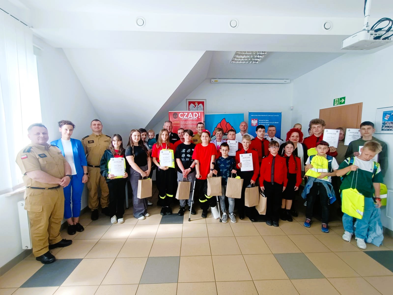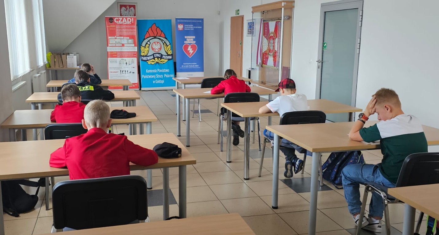 24 kwietnia 2025 roku w siedzibie Komendy Powiatowej Państwowej Straży Pożarnej w Gołdapi odbyły się eliminacje powiatowe Ogólnopolskiego Turnieju Wiedzy Pożarniczej „Młodzież Zapobiega Pożarom” (OTWP), który w szczególności służy popularyzowaniu wśród dzieci i młodzieży wiedzy ze znajomości przepisów przeciwpożarowych, zasad postępowania na wypadek pożaru, praktycznych umiejętności posługiwania się podręcznym sprzętem gaśniczym, wiedzy na temat techniki pożarniczej, organizacji ochrony przeciwpożarowej, szeroko rozumianego ratownictwa oraz wiedzy z zakresu bezpieczeństwa powszechnego, a także historii i tradycji ruchu strażackiego. Uczestnicy zostali podzieleni na dwie grupy: uczniowie szkół podstawowych klasy I-IV (I grupa) oraz uczniowie szkół podstawowych klasy V-VIII (II grupa). Po napisaniu testu z wiedzy każda z grup mogła zwiedzić strażnicę oraz z bliska poznać służbę strażaka, a także uczestniczyć w zajęciach edukacyjnych, podczas których przekazano wiele przydatnych informacji w zakresie szeroko rozumianego bezpieczeństwa i zasad zachowania ostrożności w sytuacjach zagrożenia życia/zdrowia. Strażacy zaprezentowali uczniom również sprzęt ratowniczy znajdujący się na wyposażeniu pojazdów pożarniczych. Ponadto czas przed ogłoszeniem wyników był również dobrą okazją do przybliżenia dzieciom i młodzieży informacji dotyczącej kampanii społecznej PSP „Stop Pożarom Traw”. W sumie do udziału w Turnieju zgłosiło się 17 uczestników. Klasyfikacja zmagań przedstawiała się następująco: