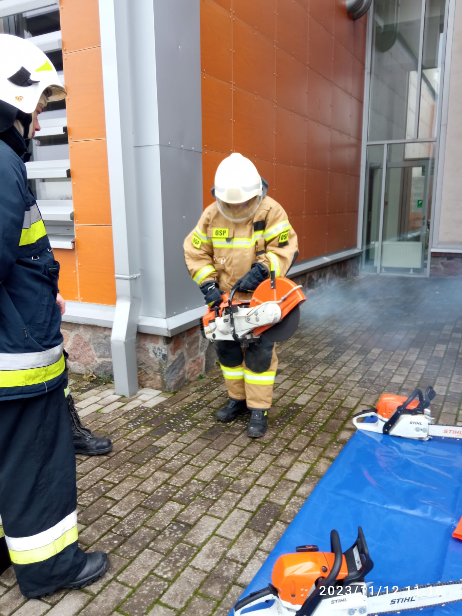Składamy również podziękowania Komendzie Powiatowej PSP w Ełku za sprawne przeprowadzenie testów w komorze dymowej oraz firmie „JANEX” z Kośmidr (gm. Gołdap) za udostępnienie wraków pojazdów do ćwiczeń praktycznych i Panu Zdzisławowi Galińskiemu z Gołdapi za drzewo przekazane na potrzeby szkolenia w zakresie pracy z pilarkami.