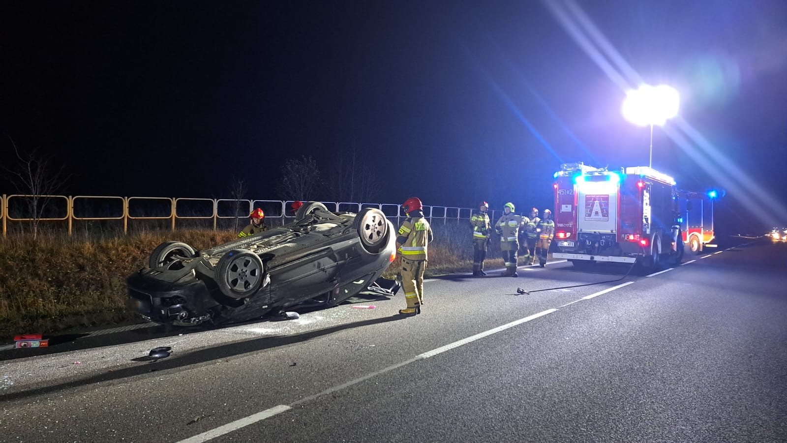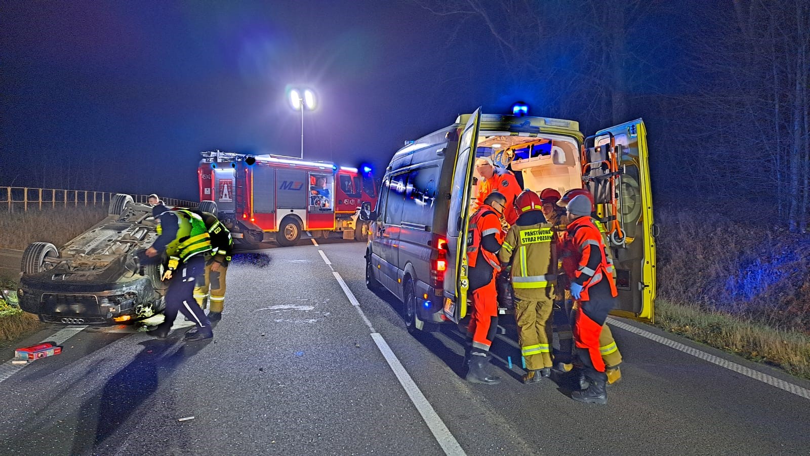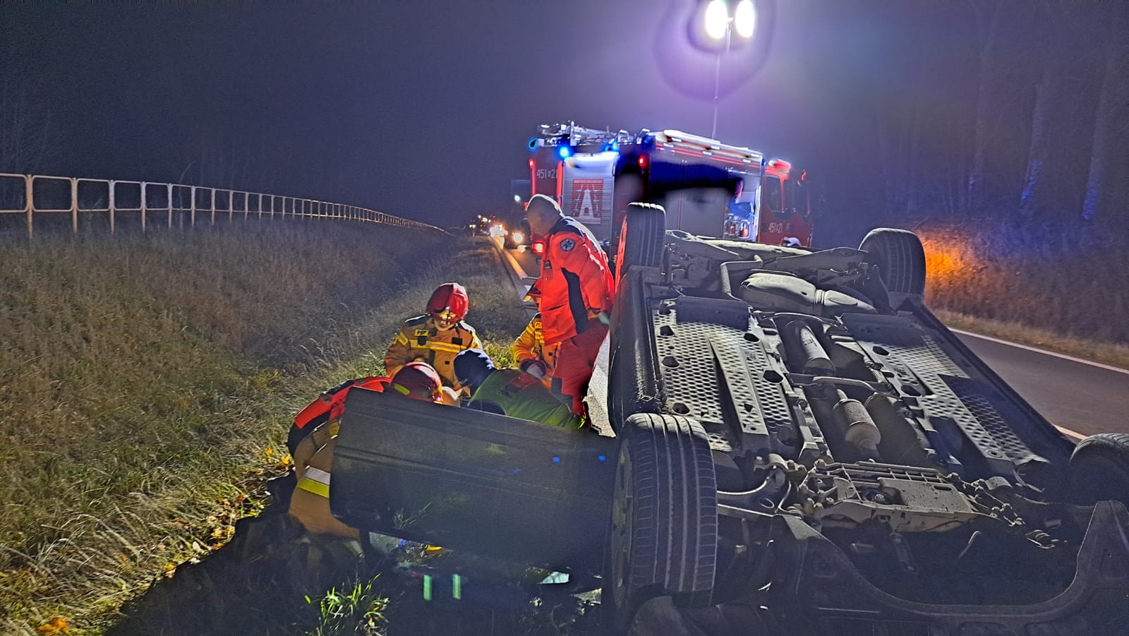 10 listopada 2023 roku o godzinie 16:33 dyżurny stanowiska kierowania Komendanta Powiatowego Państwowej Straży Pożarnej w Gołdapi otrzymał zgłoszenie o zderzeniu dwóch samochodów osobowych na drodze krajowej nr 65 w miejscowości Kozaki, gm. Gołdap. Do akcji zostały zadysponowane dwa zastępy z gołdapskiej komendy oraz jednostka Ochotniczej Straży Pożarnej w Górnem. Na miejscu zdarzenia zastano jeden pojazd usytuowany na dachu. Obok auta znajdowała się osoba poszkodowana, którą na zewnątrz wydostali świadkowie wypadku. Kierujący drugą osobówką znajdował się poza samochodem i nie zgłaszał żadnych dolegliwości. Pojazdami podróżowali jedynie kierowcy. Przybyły na miejsce Zespół Ratownictwa Medycznego po przebadaniu uczestników zdarzenia, zadecydował o transporcie jednej osoby poszkodowanej do szpitala. Działania strażaków polegały m.in. na zabezpieczeniu miejsca zdarzenia, udzieleniu kwalifikowanej pierwszej pomocy poszkodowanemu, odłączeniu zasilania w autach oraz pomocy Policji w kierowaniu ruchem drogowym podczas prowadzonych czynności dochodzeniowo–śledczych.