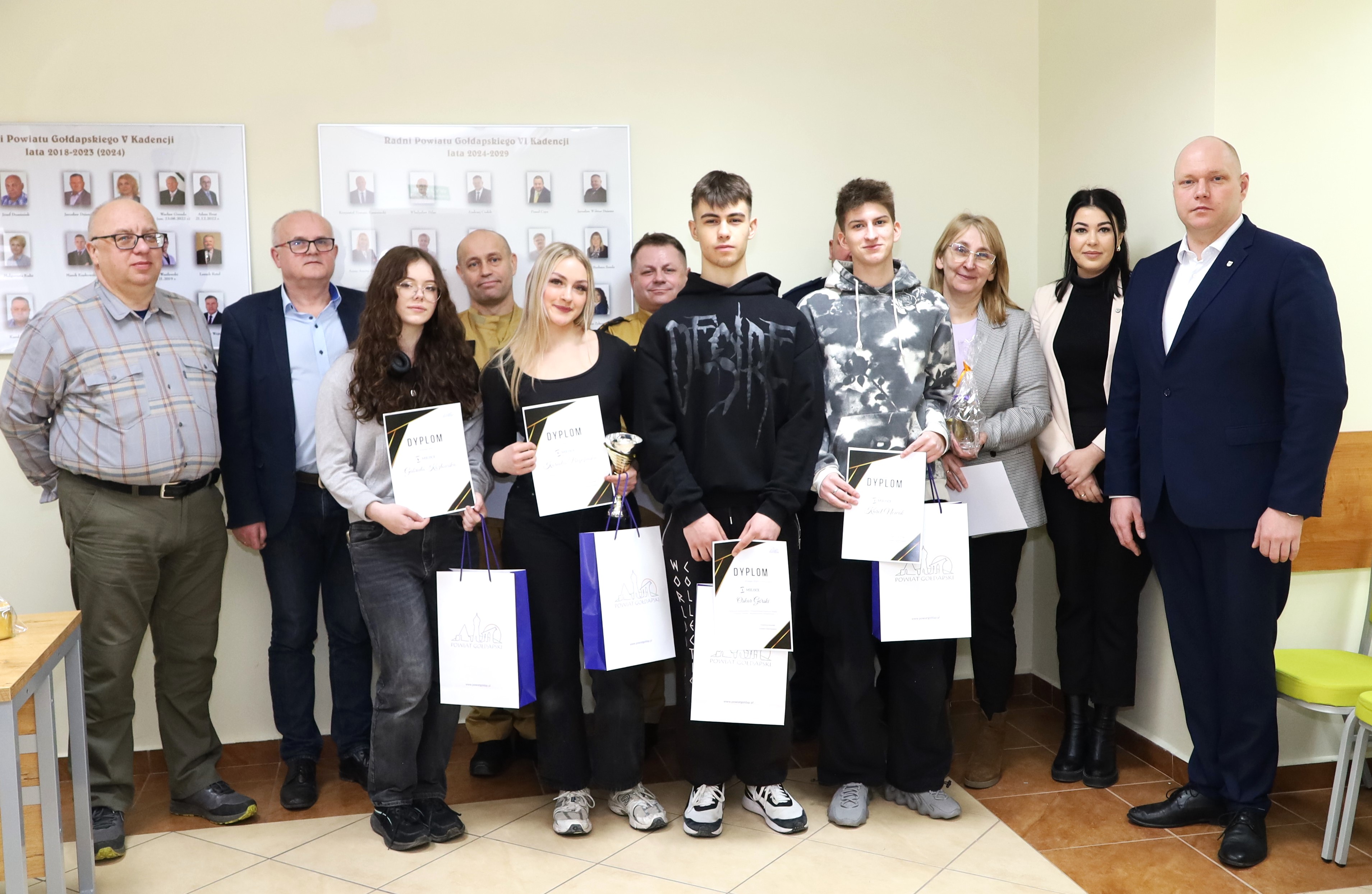 28 lutego 2025 roku w siedzibie Starostwa Powiatowego w Gołdapi odbyły się międzyszkolne eliminacje I Wojewódzkiego Konkursu Wiedzy o Ochronie Ludności i Bezpieczeństwie Powszechnym. Celem ww. przedsięwzięcia jest m.in. edukacja i popularyzowanie wiedzy w zakresie ochrony ludności i bezpieczeństwa powszechnego, przygotowanie młodzieży szkół ponadpodstawowych do racjonalnych zachowań w obliczu zagrożeń cywilizacyjnych oraz kształtowanie nawyków i umiejętności w zakresie udzielania pierwszej pomocy w nagłych wypadkach. W skład zespołu sędziowskiego z ramienia Komendy Powiatowej Państwowej Straży Pożarnej w Gołdapi, który oceniał eliminacje wchodzili: st. kpt. Bogdan Mielnik i st. ogn. Jacek Klimko. W zmaganiach udział wzięły dwa dwuosobowe zespoły ze szkół ponadpodstawowych powiatu gołdapskiego, tj. drużyna z Liceum Ogólnokształcącego im. Jana Pawła II w Gołdapi oraz reprezentacja z Zespołu Szkół Zawodowych w Gołdapi. Eliminacje międzyszkolne polegały na rozwiązaniu pisemnego testu wiedzy oraz udzieleniu ustnych odpowiedzi na pytania członków zespołu sędziowskiego obejmujących zagadnienia bezpieczeństwa powszechnego, a także sprawdzeniu praktycznych umiejętności w zakresie udzielania pierwszej pomocy. Lepszą w rywalizacji okazał się być zespół z Liceum Ogólnokształcącego im. Jana Pawła II w Gołdapi. Zwycięzcom serdecznie gratulujemy i życzymy sukcesów w dalszym etapie na szczeblu wojewódzkim, który odbędzie się 14 marca 2025 roku.