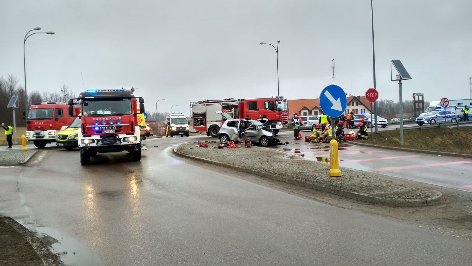 4 marca 2021 roku o godzinie 1212 dyżurny stanowiska kierowania Komendanta Powiatowego PSP w Gołdapi otrzymał zgłoszenie o wypadku dwóch samochodów osobowych na obwodnicy Gołdapi. Do działań zostały zadysponowane cztery zastępy strażaków z gołdapskiej komendy, jednostka OSP Górne oraz Wojskowa Straż Pożarna. Na miejscu okazało się, że jednym z samochodów jechało pięć osób, natomiast drugim sam kierowca. Wszystkie osoby podróżujące pierwszym autem wymagały udzielenia pomocy medycznej, w tym jedna pozostawała uwięziona we wraku pojazdu. Przy użyciu narzędzi hydraulicznych uwolniono osobę poszkodowaną i ewakuowano w miejsce bezpieczne, gdzie udzielono dalszej pomocy medycznej. Przybyłe na miejsce zdarzenia Zespoły Ratownictwa Medycznego po przebadaniu, zabrały poszkodowanych do szpitali. Jedna osoba została przetransportowana śmigłowcem Lotniczego Pogotowia Ratunkowego. Dalsze działania strażaków polegały na: zabezpieczeniu miejsca zdarzenia, odłączeniu zasilania w pojazdach, likwidacji wycieku płynów eksploatacyjnych oraz pomocy Policji przy kierowaniu ruchem drogowym podczas prowadzonych czynności dochodzeniowo–śledczych.