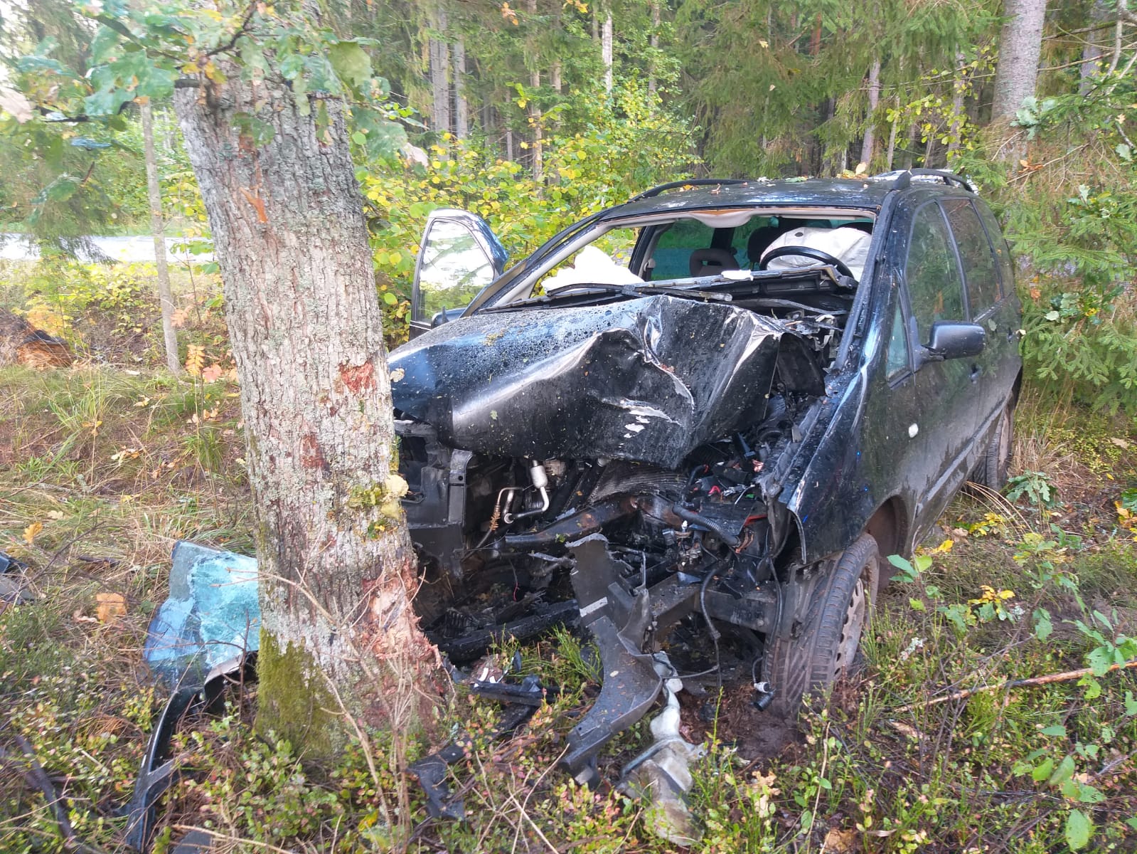 Powiat gołdapski – zderzenie pojazdu osobowego z drzewem
