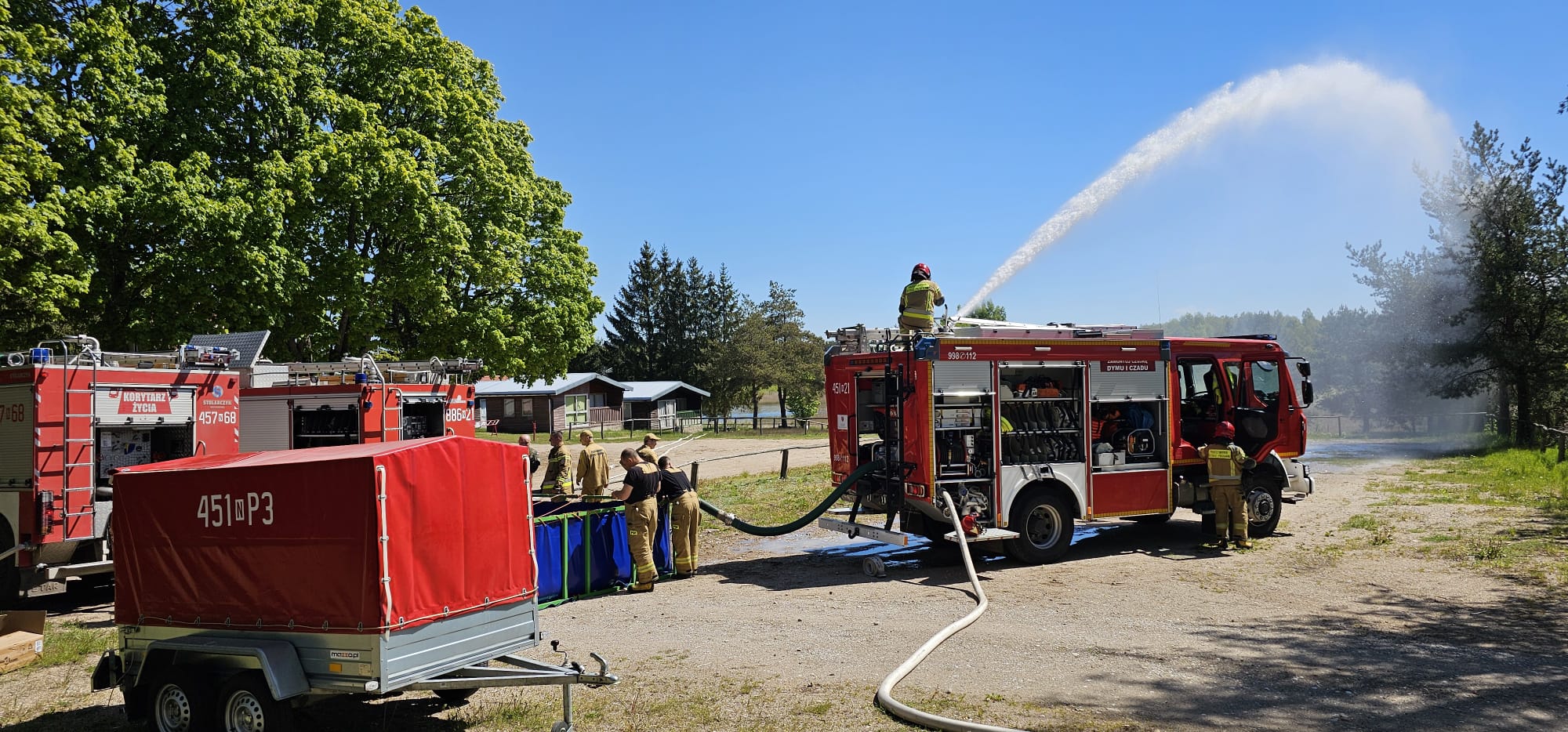 20 maja 2025 roku na terenie jednego z hoteli w Gołdapi odbyły się ćwiczenia mające na celu doskonalenie umiejętności z zakresu prowadzenia działań ratowniczo-gaśniczych podczas pożaru pomieszczenia na poddaszu budynku, ewakuacji osób poszkodowanych przy użyciu podnośnika hydraulicznego i drabiny pożarniczej oraz budowy systemu zaopatrzenia wodnego z pobliskiego akwenu (symulowana awaria sieci hydrantowej). Manewry były poprzedzone operacyjnym rozpoznaniem obiektu. W przedsięwzięciu wzięli udział funkcjonariusze Komendy Powiatowej Państwowej Straży Pożarnej w Gołdapi, druhowie Ochotniczej Straży Pożarnej w Dunajku oraz strażacy Wojskowej Straży Pożarnej w Gołdapi.