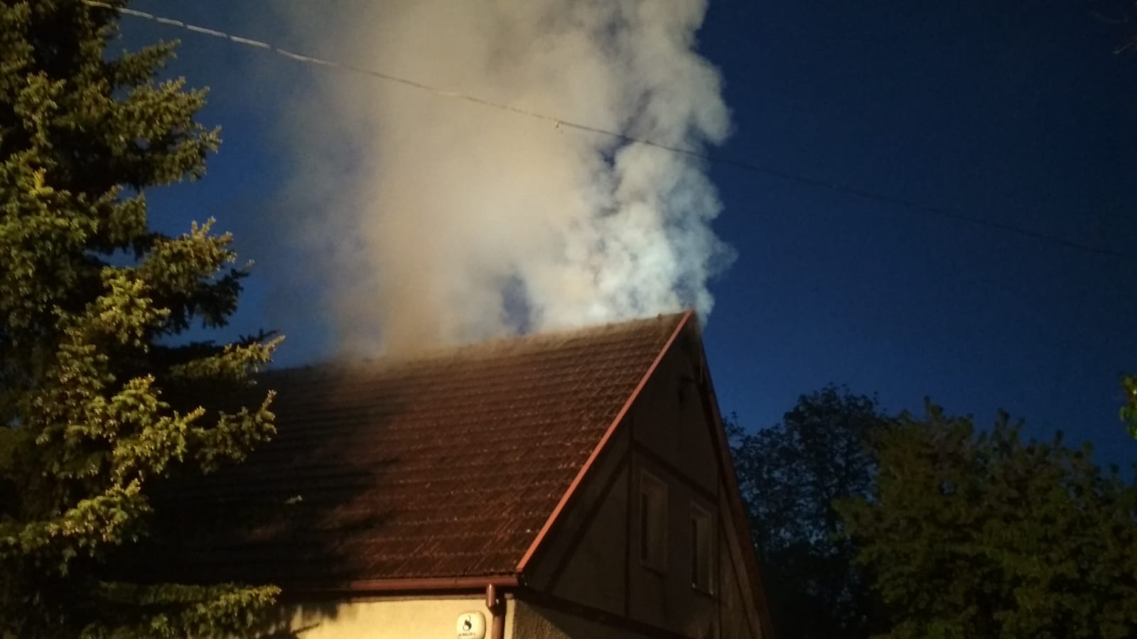 Pożar poddasza domu jednorodzinnego w Gołdapi