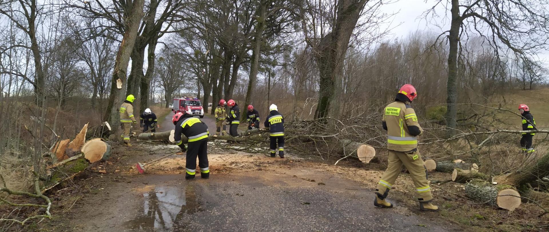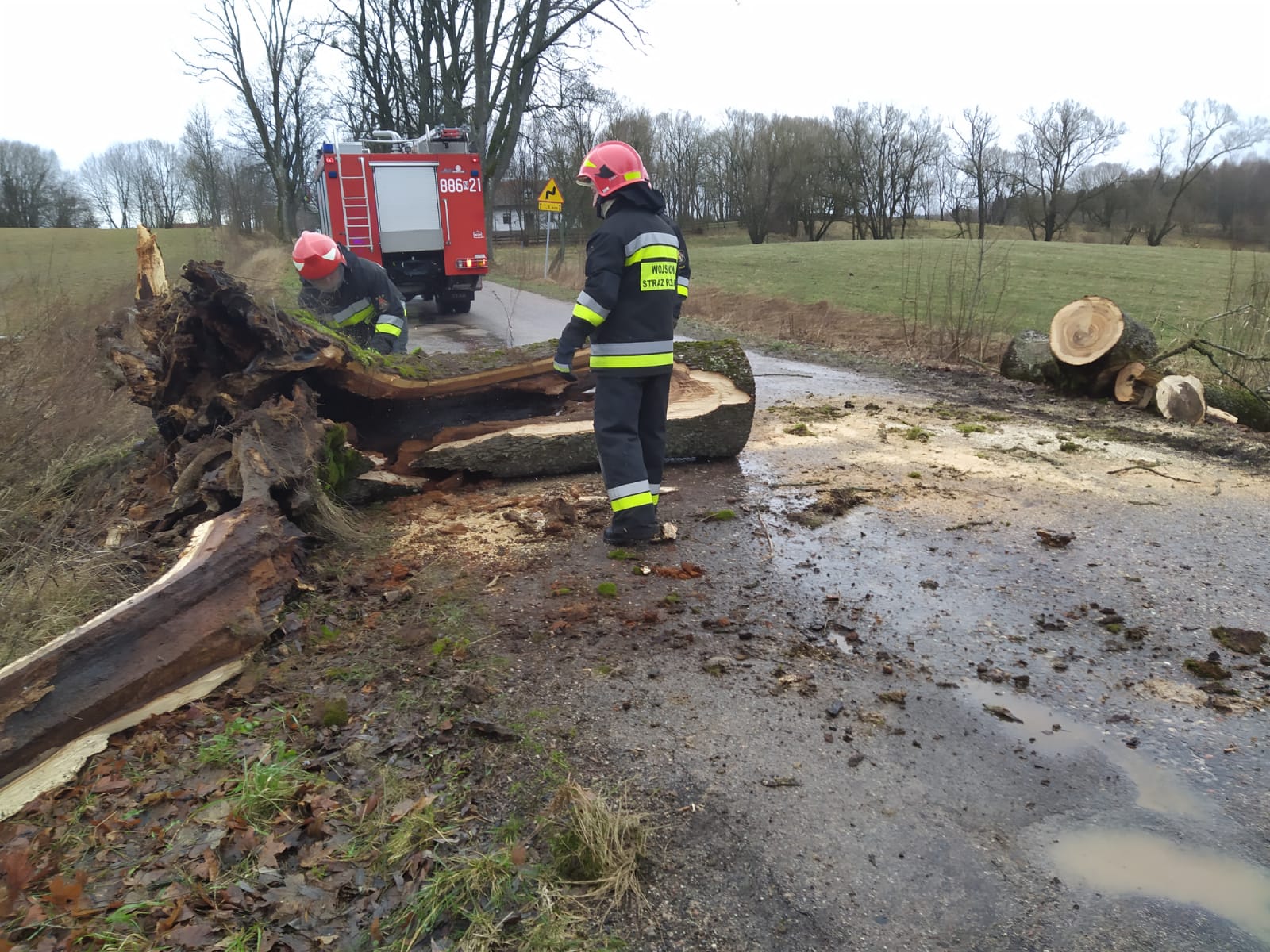 - 15 interwencji dotyczyło usuwania powalonych drzew i złamanych konarów, w tym w jednym przypadku drzewo spadło na dach budynku mieszkalnego zaczepiając o linie energetyczne w miejscowości Górne,