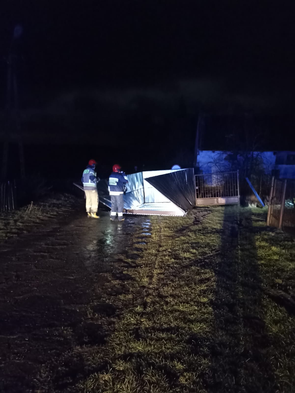 - 1 zdarzenie dotyczyło przewróconego przez wiatr blaszanego garażu na drogę.