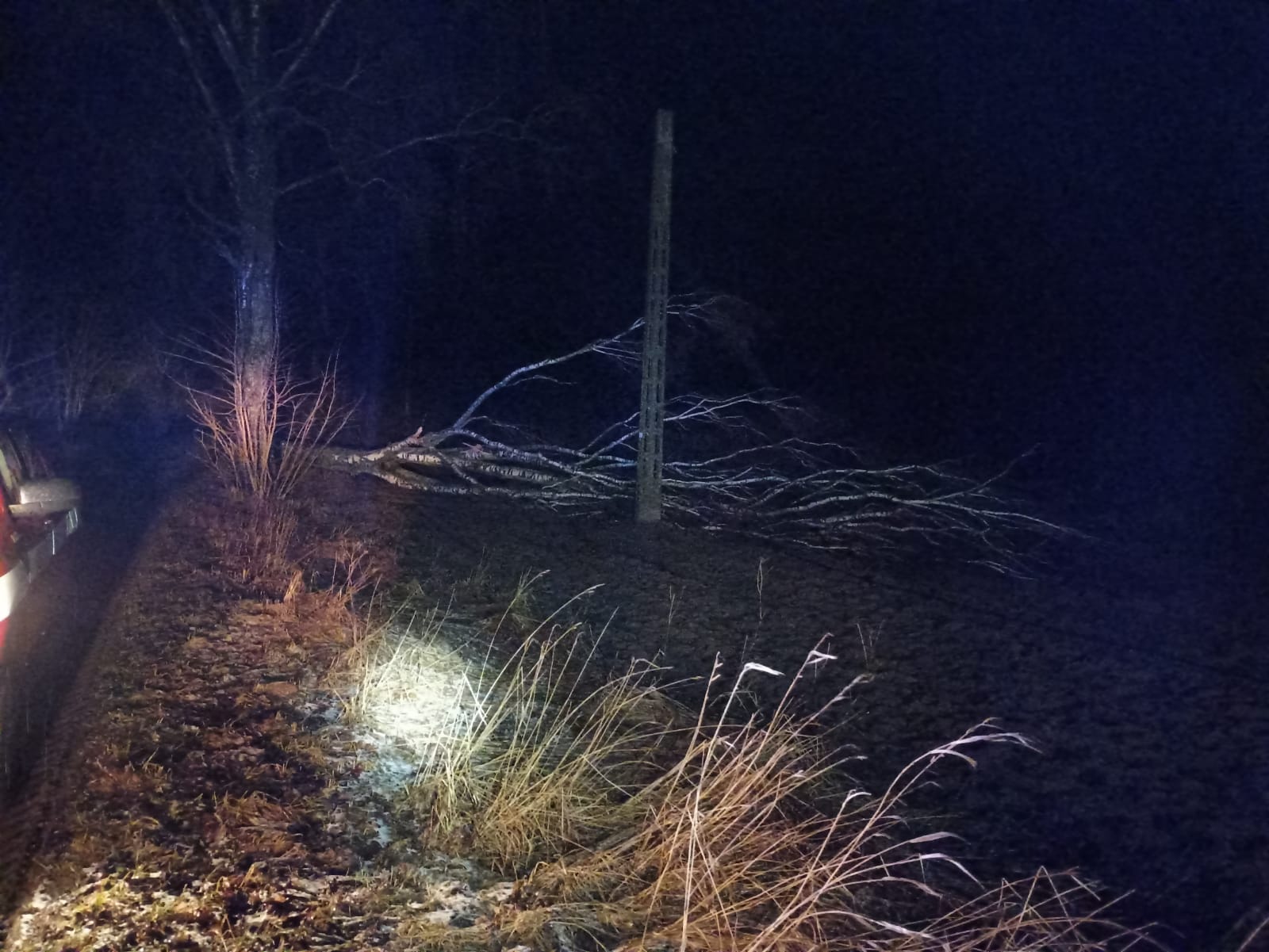 - 24 interwencje dotyczyły usuwania powalonych drzew i złamanych konarów głównie z dróg publicznych powiatu gołdapskiego (w tym w jednym przypadku drzewo zagrażało budynkowi mieszkalnemu, natomiast w kolejnym zerwało linię energetyczną),