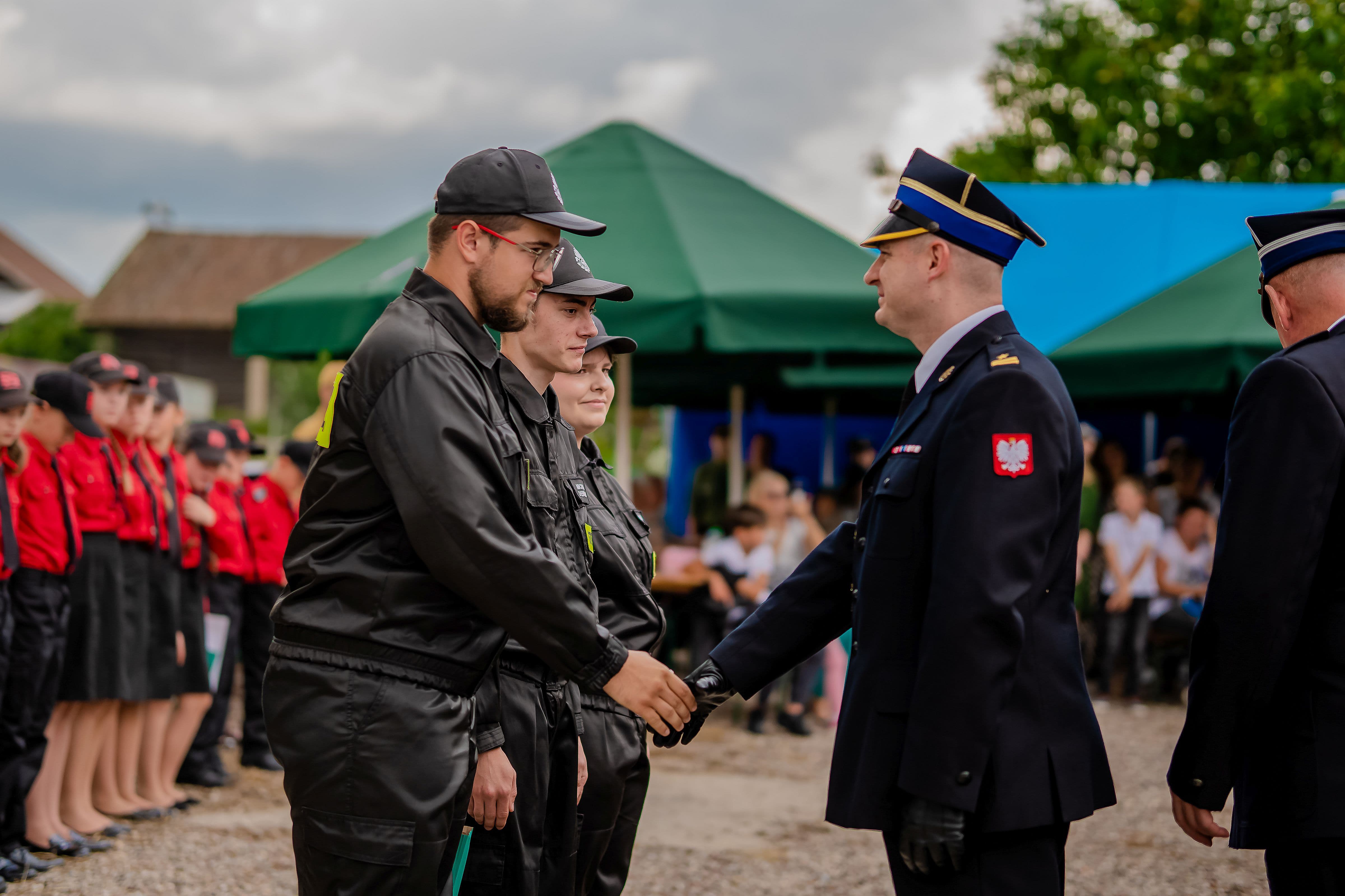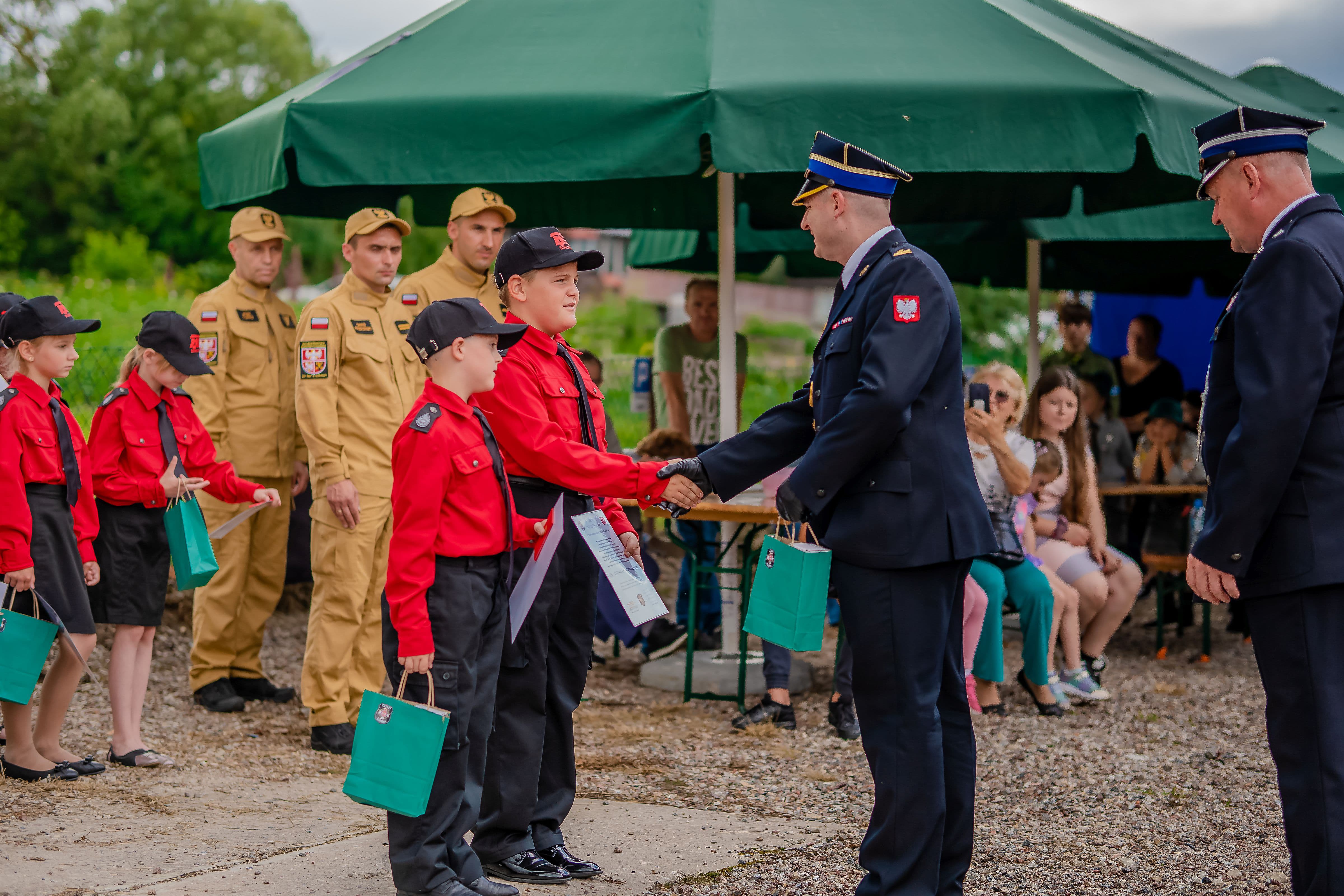 Na zakończenie głos zabrali zaproszeni goście, którzy skierowali słowa uznania do nowych członków zarówno MDP, jak i OSP w Surminach w związku z decyzją o wstąpieniu w szeregi wspólnoty strażaków ochotników oraz chęci służby na rzecz bezpieczeństwa lokalnej społeczności, w tym od najmłodszych lat, a także gratulowali wszystkim osobom odznaczonym i wyróżnionym. Uroczystość zwieńczyło wspólne zdjęcie, poczęstunek oraz piknik strażacki. Będący na miejscu funkcjonariusze KP PSP w Gołdapi prowadzili zajęcia w zakresie udzielania kwalifikowanej pierwszej pomocy oraz prezentował sprzęt ratowniczy znajdujący się na wyposażeniu pojazdu pożarniczego, a druhowie OSP Surminy zaprezentowali pokaz ewakuacji osoby poszkodowanej z pojazdu przy użyciu sprzętu hydraulicznego.