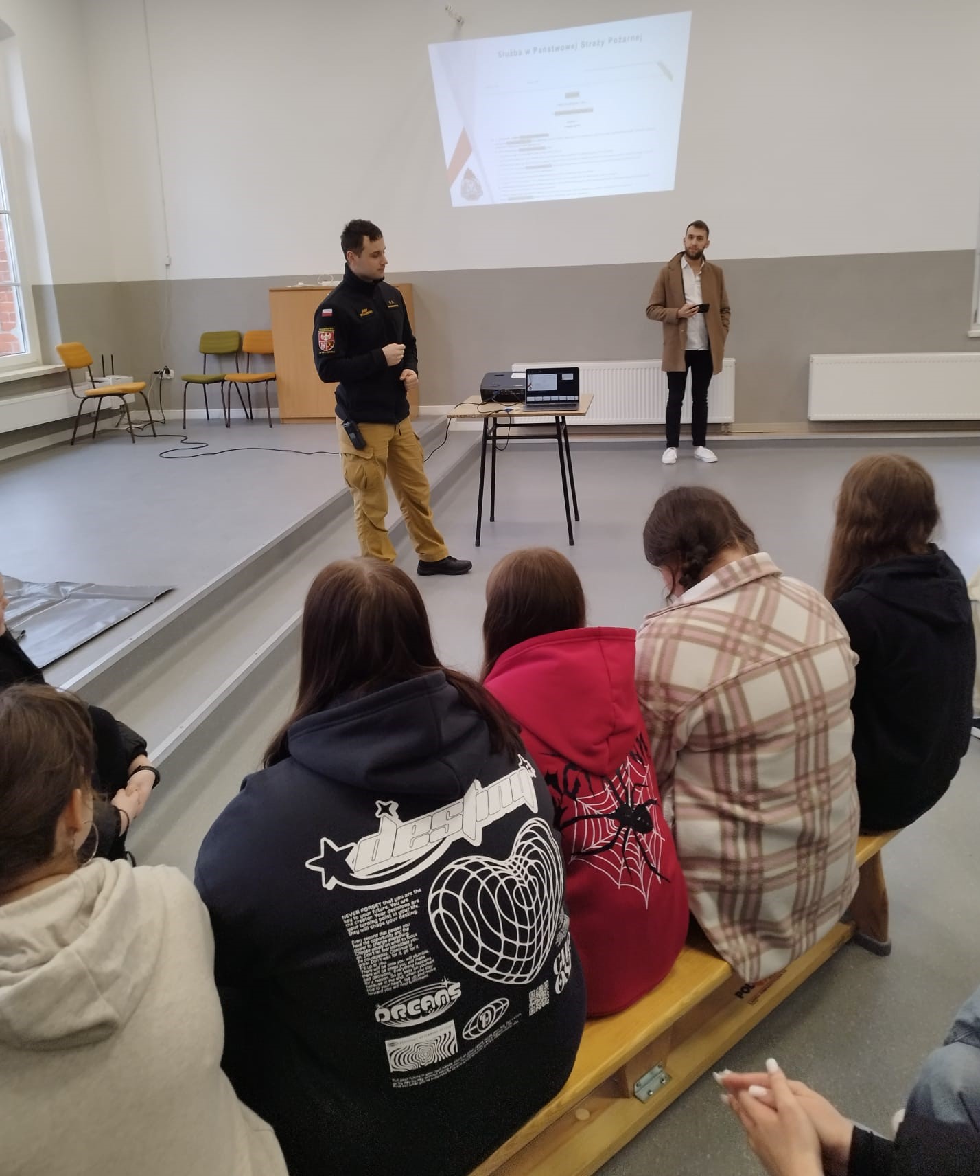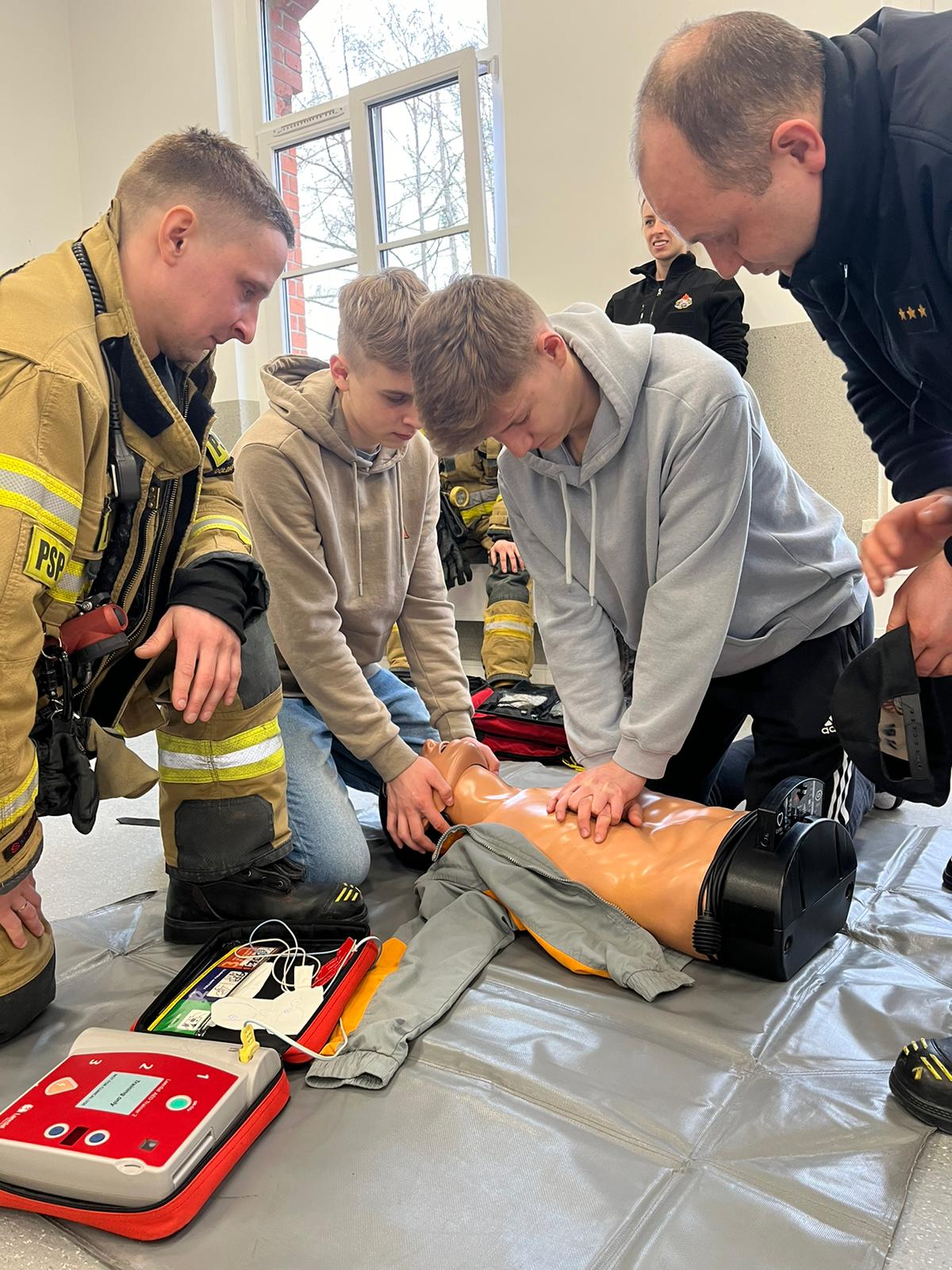 Wizyta strażaków była również dobrą okazją do zainteresowania młodzieży służbą w szeregach Państwowej Straży Pożarnej oraz przeprowadzenia zajęć w zakresie udzielania kwalifikowanej pierwszej pomocy.