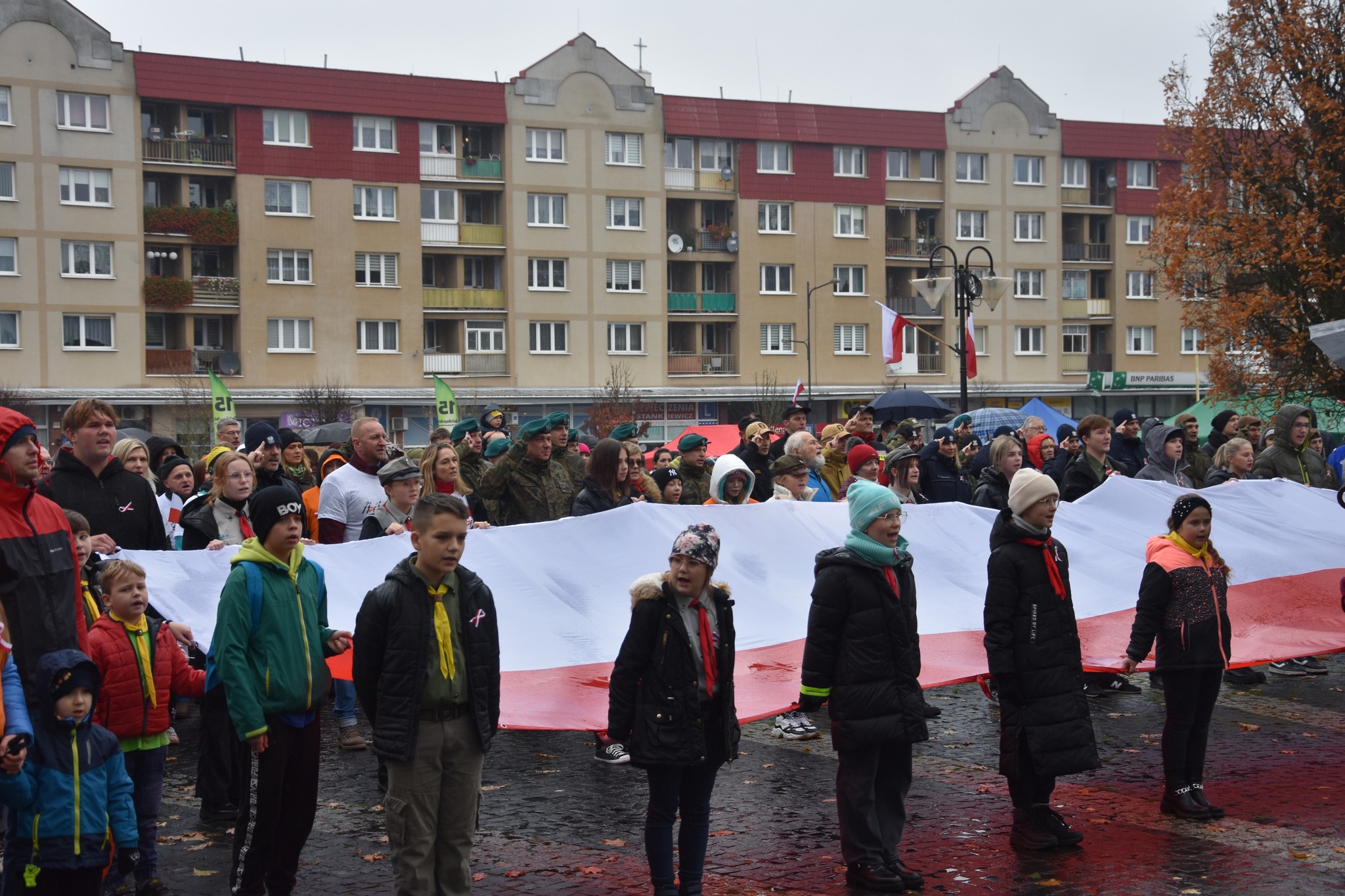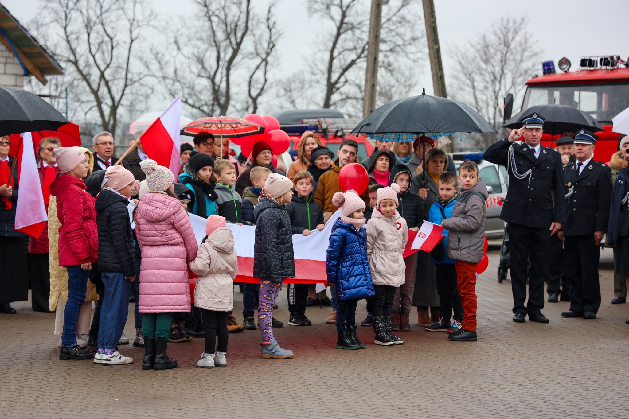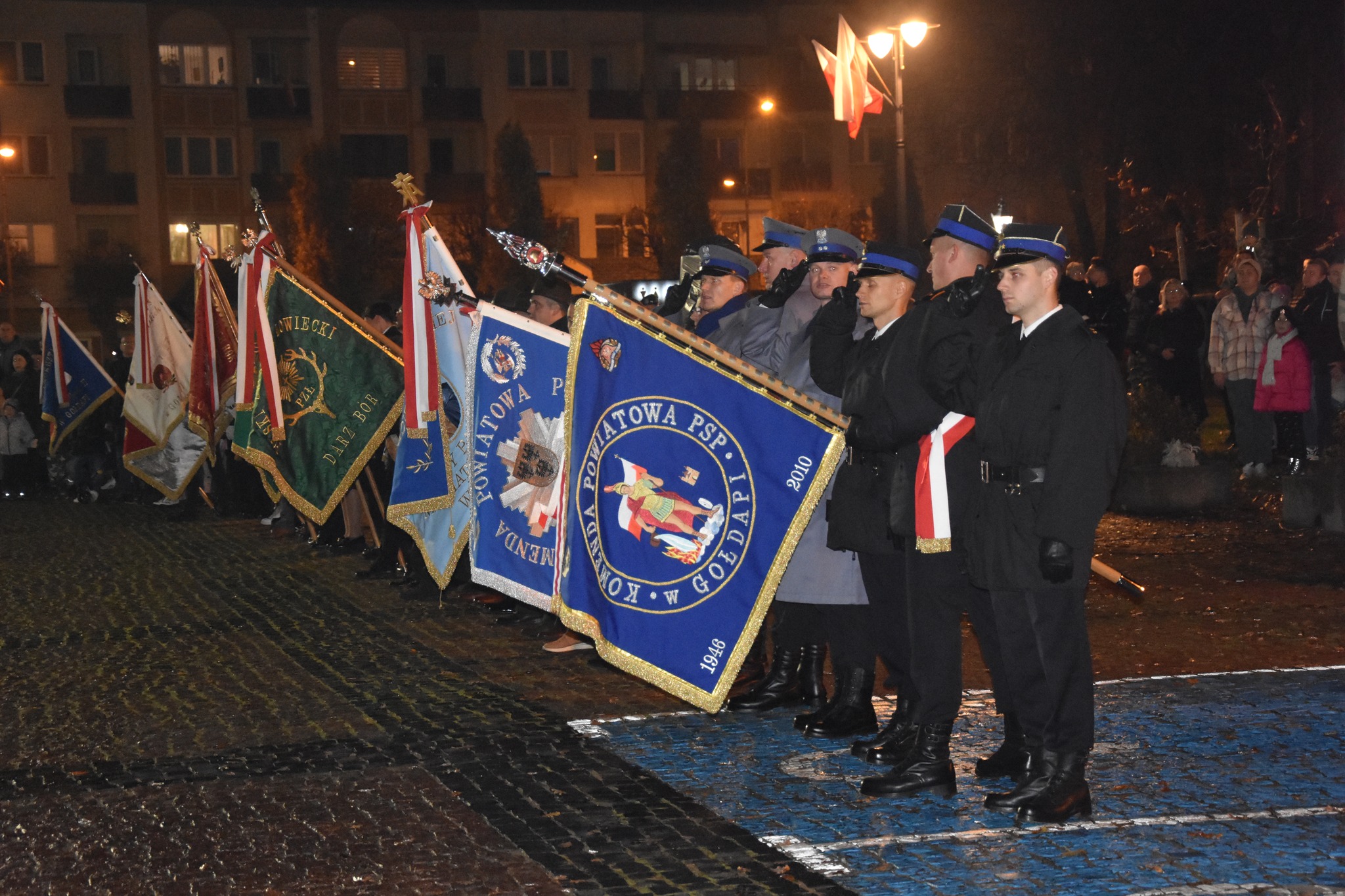 11 listopada 2023 roku gołdapscy strażacy wzięli udział w szeregu przedsięwzięć, które uczciły obchody Narodowego Święta Niepodległości. Podczas uroczystej zmiany służby w Komendzie Powiatowej Państwowej Straży Pożarnej w Gołdapi podniesiono flagę Rzeczypospolitej Polskiej na maszt i odśpiewano Mazurka Dąbrowskiego. W ramach obchodów organizowanych na Placu Zwycięstwa w Gołdapi, strażacy prowadzili pogadanki i ćwiczenia dot. m.in. udzielania pierwszej pomocy medycznej. Przedstawiciele KP PSP w Gołdapi oraz druhowie Ochotniczej Straży Pożarnej w Grabowie o godz. 11:11 uczestniczyli również w trzynastej edycji sztafety „11.11.11.11.13”, będącej wyjątkowym typem wydarzenia kulturalnego promującym nowoczesną formę patriotyzmu i wolontariat angażujący oraz integrujący całą społeczność lokalną, ukazujący alternatywny sposób spędzenia wolnego czasu. Punktualnie o godz. 12:00 pod Pomnikiem Niepodległości w Gołdapi, funkcjonariusze i druhowie razem z mieszkańcami miasta oraz przedstawicielami władz samorządowych i innych służb zaśpiewali hymn państwowy. W tym samym czasie (w samo południe) na placu przy Urzędzie Gminy w Baniach Mazurskich, druhowie OSP wspólnie z lokalną społecznością oraz samorządowcami wykonali Mazurka Dąbrowskiego. Oba wydarzenia odbyły się w ramach akcji „Niepodległa do Hymnu”.
