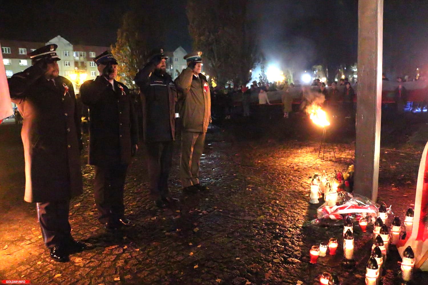Podczas dalszej części obchodów 105. rocznicy odzyskania przez Polskę Niepodległości organizowanych w Gołdapi, Zastępca Komendanta Powiatowego Państwowej Straży Pożarnej w Gołdapi st. kpt. Michał Herman wziął udział we Mszy Świętej w intencji Ojczyzny oraz uroczystym odśpiewaniu hymnu i podniesieniu flagi państwowej na Placu Zwycięstwa, a także wspólnie z przedstawicielami innych służb złożył kwiaty pod Pomnikiem Niepodległości.