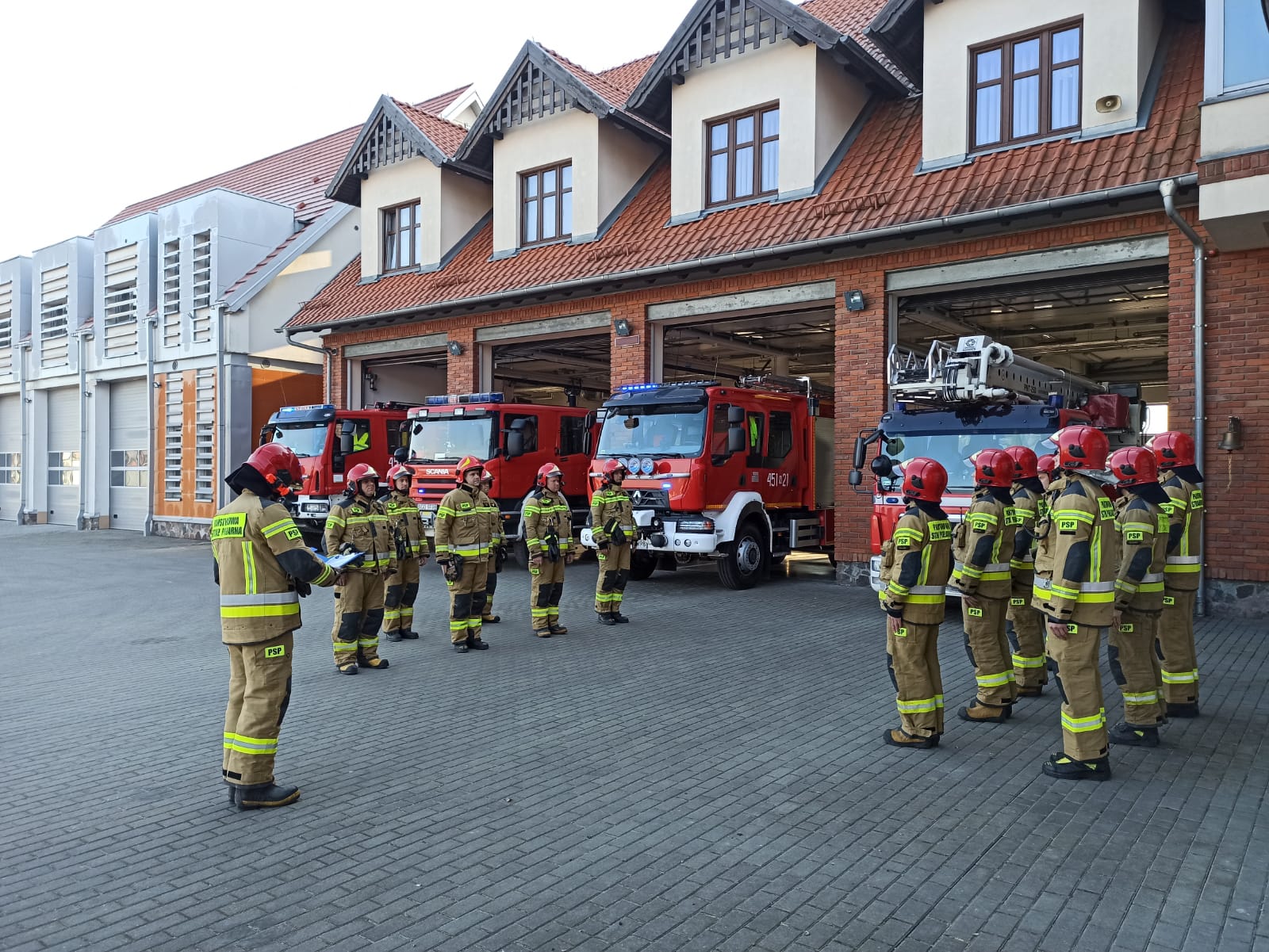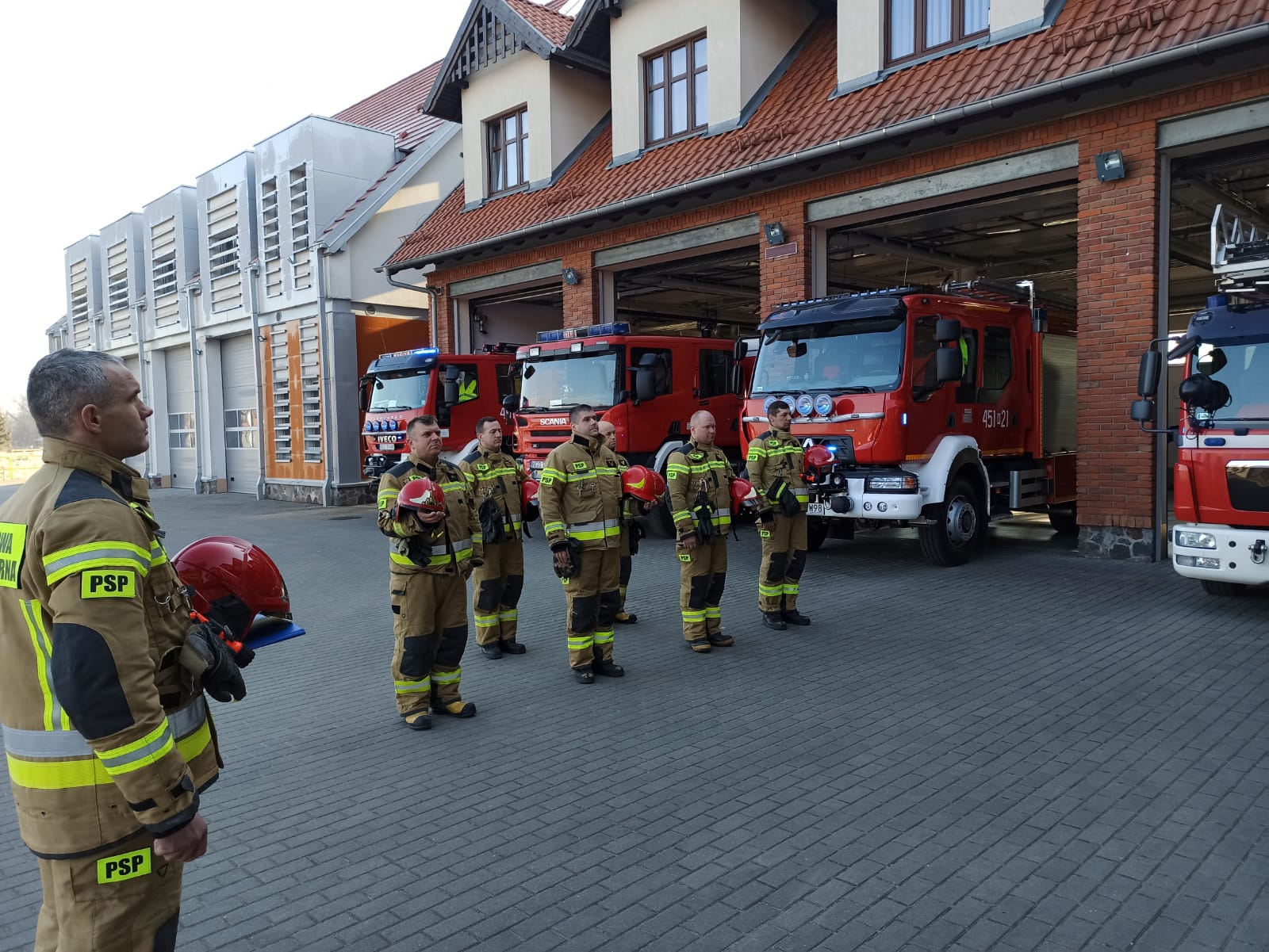 O godzinie 8:00 przed nasze jednostki Państwowej Straży Pożarnej i Ochotniczych Straży Pożarnych wyjechały samochody, włączono sygnały błyskowe i minutą ciszy strażacy uczcili pamięć swoich kolegów z Ukrainy.