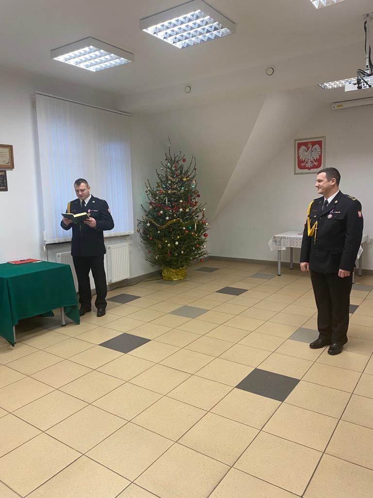 23 grudnia 2022 roku w Komendzie Powiatowej Państwowej Straży Pożarnej w Gołdapi odbyła się uroczysta zbiórka z okazji ślubowania nowo przyjętych strażaków. Uroczystość rozpoczął dowódca jednostki ratowniczo–gaśniczej mł. bryg. Andrzej Jabłoński składając meldunek Komendantowi Powiatowemu PSP w Gołdapi st. bryg. Wojciechowi Szczepanikowi o gotowości do rozpoczęcia uroczystej zbiórki. W obecności funkcjonariuszy i pracowników cywilnych komendy oraz emerytowanych strażaków, ślubowanie złożyli str. Maciej Kosiński oraz str. Kamil Świerzbin, które przyjął Komendant Powiatowy PSP w Gołdapi st. bryg. Wojciech Szczepanik.