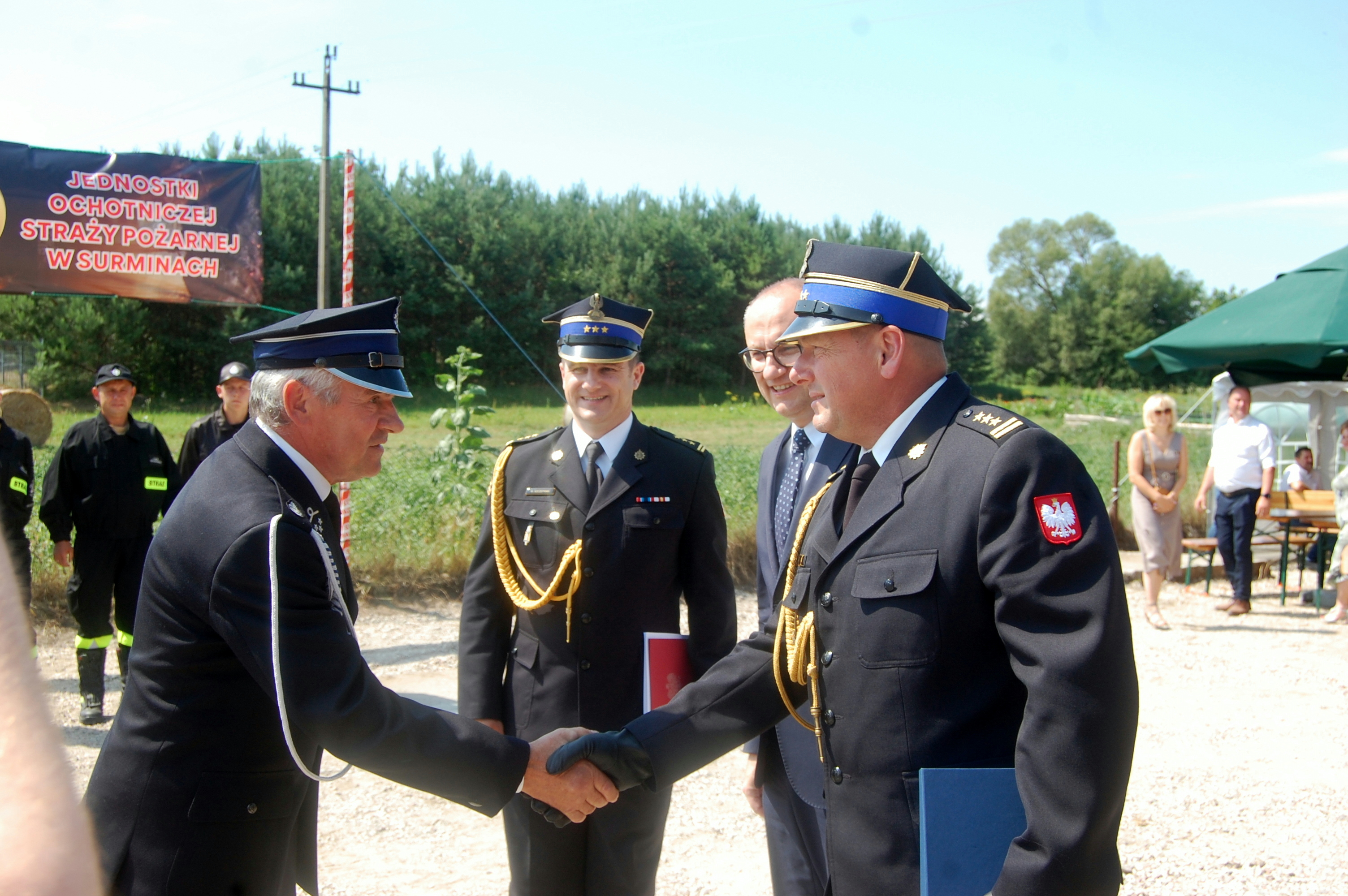 Uroczystość była również okazją do wręczenia odznaczeń Związku Ochotniczych Straży Pożarnych Rzeczypospolitej Polskiej oraz awansów na wyższe stopnie funkcyjne druhów Ochotniczej Straży Pożarnej w Surminach.