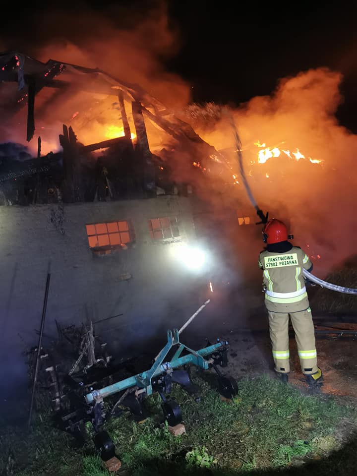 Wróbel, powiat gołdapski – pożar obiektu inwentarskiego i budynków gospodarczych