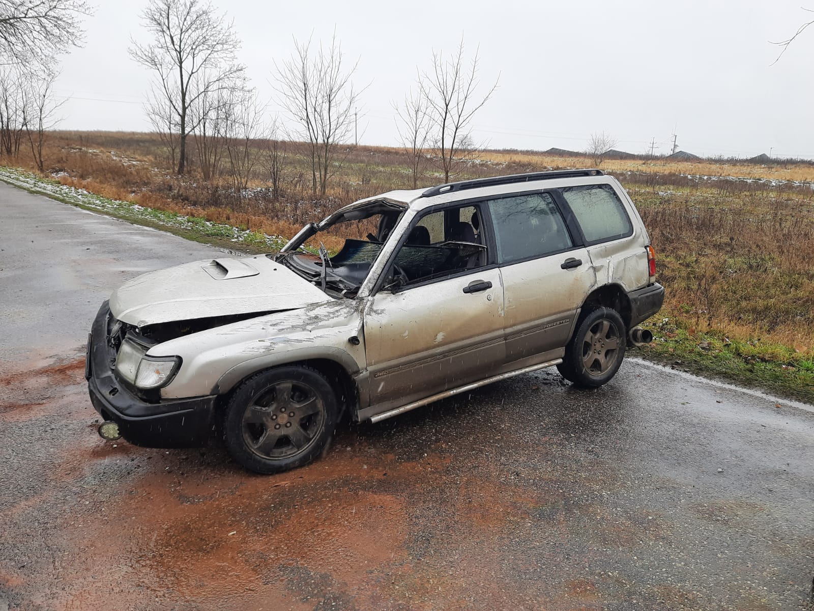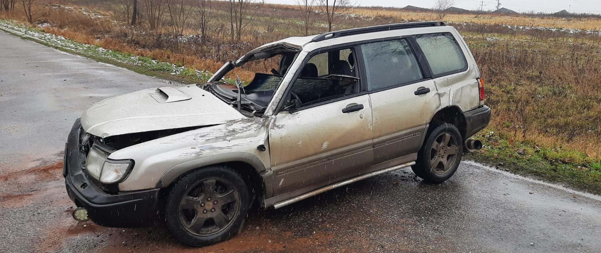 27 listopada 2021 roku o godzinie 11:54 dyżurny stanowiska kierowania Komendanta Powiatowego PSP w Gołdapi otrzymał zgłoszenie o wypadku samochodu osobowego na ulicy Kościuszki w Baniach Mazurskich. Do akcji wysłano dwa zastępy z gołdapskiej komendy oraz OSP Banie Mazurskie. Po przybyciu na miejsce zdarzenia stwierdzono, że na jezdni znajduje się pojazd osobowy usytuowany na boku, a kierująca nim osoba opuściła auto o własnych siłach i znajdowała się w karetce Zespołu Ratownictwa Medycznego – nie zachodziła potrzeba hospitalizacji. Działania strażaków polegały na zabezpieczeniu miejsca zdarzenia, odłączeniu zasilania w pojeździe, zakręceniu zaworów zbiornika z gazem (LPG) oraz likwidacji wycieku płynów eksploatacyjnych. Dalsze działania dotyczyły m.in.: pomocy Policji w zabezpieczeniu miejsca prowadzonych czynności dochodzeniowo–śledczych, w tym kierowaniu ruchem drogowym.