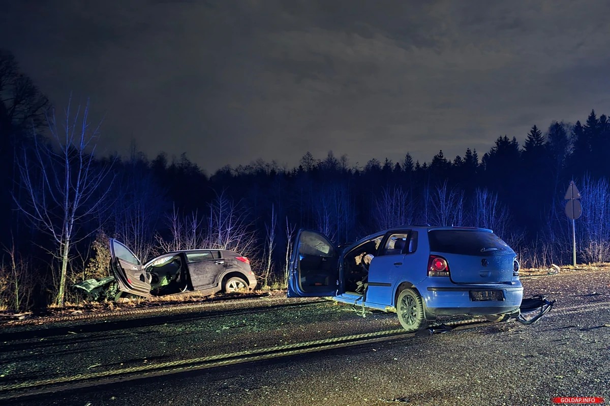 Wypadek dwóch aut osobowych w Regielach, gm. Gołdap