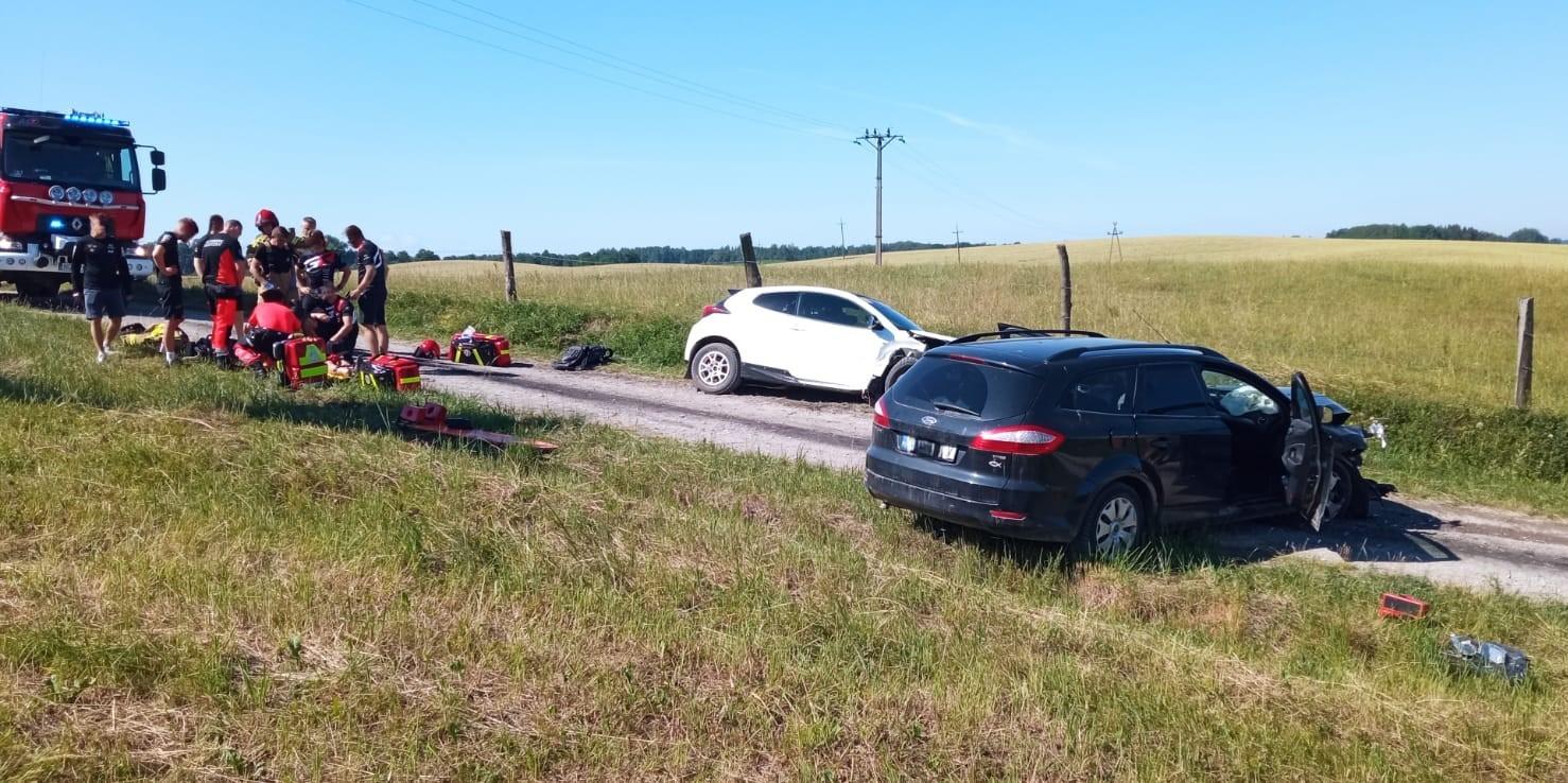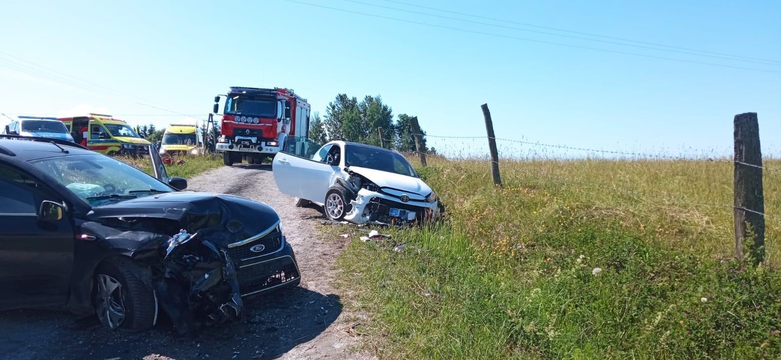 Wypadek dwóch pojazdów osobowych we Włostach, gm. Gołdap