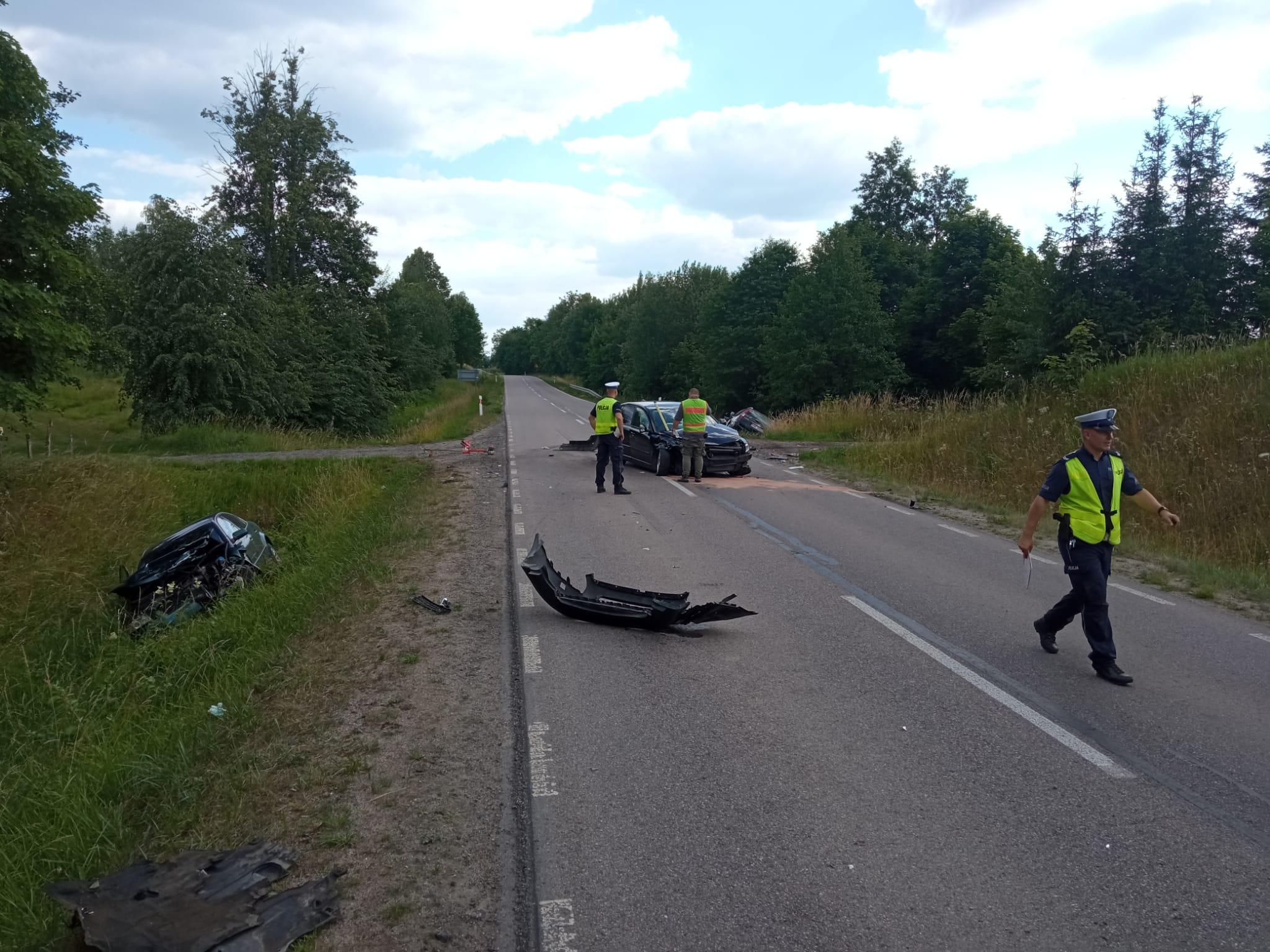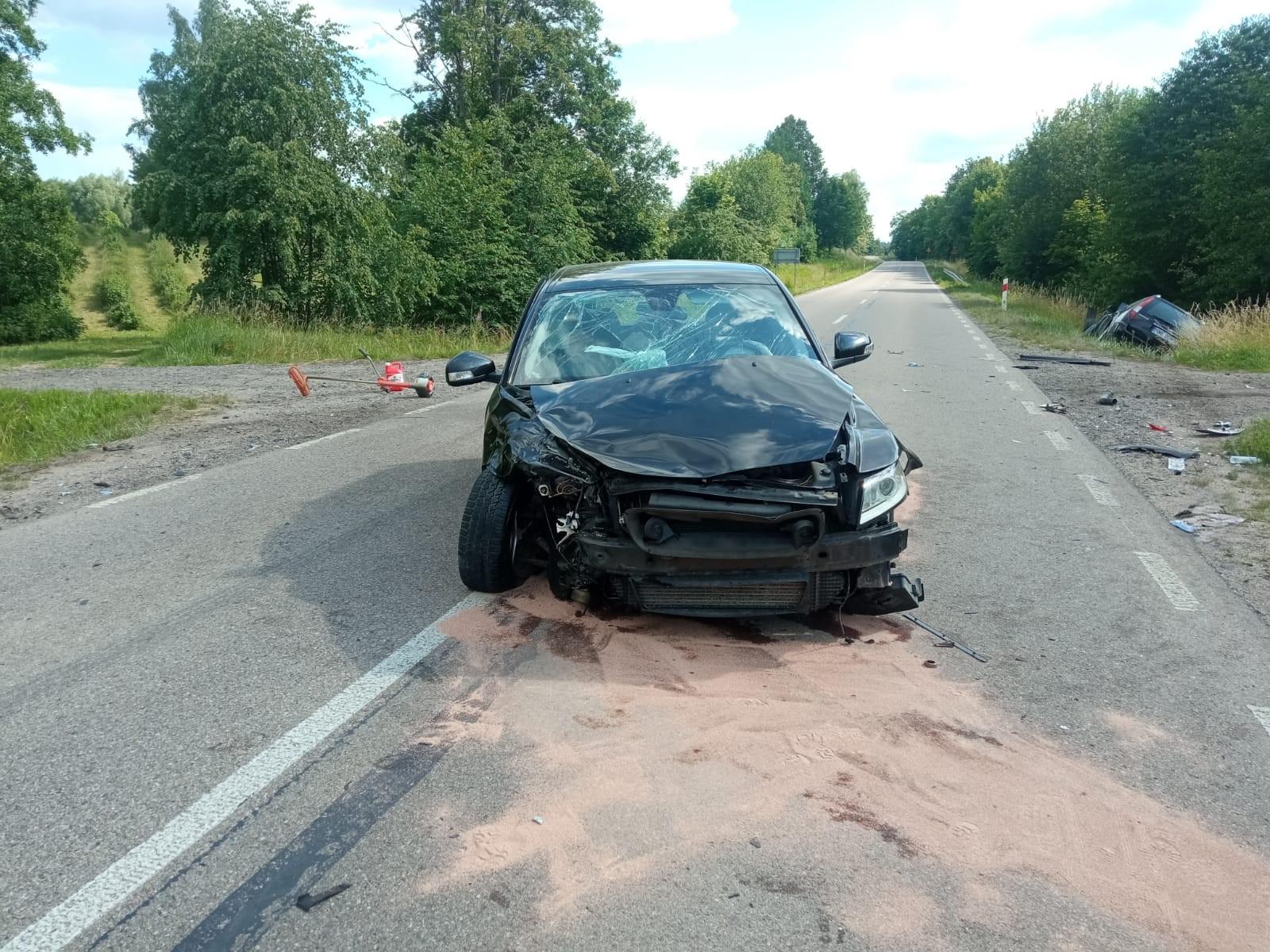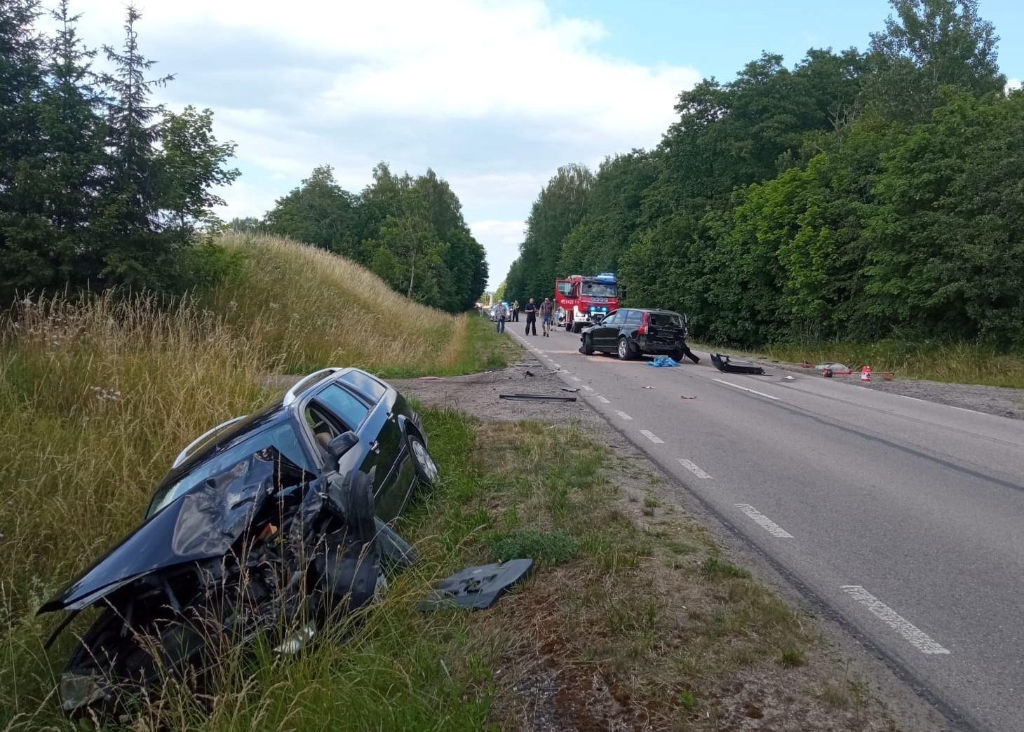 Wypadek trzech osobówek we Wronkach Wielkich, gm. Gołdap