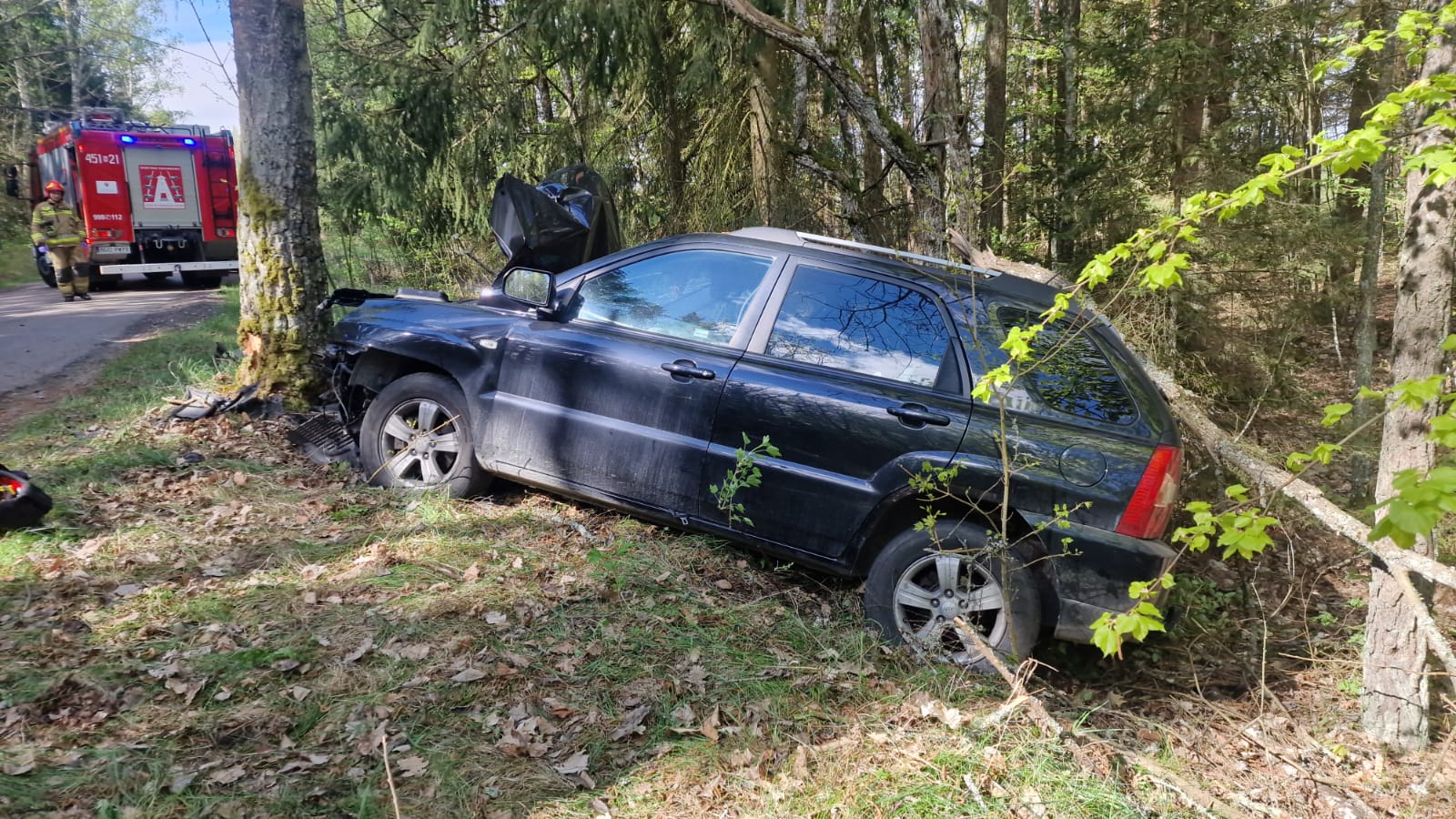 25 kwietnia 2025 roku o godzinie 09:42 dyżurny stanowiska kierowania Komendanta Powiatowego Państwowej Straży Pożarnej w Gołdapi otrzymał zgłoszenie o wypadku samochodu osobowego w miejscowości Skocze, gm. Gołdap (droga powiatowa). Do akcji zostały zadysponowane trzy zastępy z gołdapskiej komendy. Na miejscu okazało się, że auto uderzyło w przydrożne drzewo. Osobówką podróżował jedynie kierowca, który w momencie przybycia jednostek ochrony przeciwpożarowej przebywał poza pojazdem. Po przybyciu na miejsce akcji Zespołu Ratownictwa Medycznego i przebadaniu poszkodowanego, zdecydowano o transporcie do podmiotu leczniczego śmigłowcem Lotniczego Pogotowia Ratunkowego. Działania strażaków polegały m.in. na: zabezpieczeniu miejsca zdarzenia, udzieleniu osobie poszkodowanej pomocy medycznej oraz odłączeniu zasilania w samochodzie. W trakcie prowadzenia działań ratowniczych droga powiatowa w okolicach miejscowości Skocze była całkowicie zablokowana. Czynności dochodzeniowo-śledcze dotyczące zdarzenia są prowadzone przez Policję.