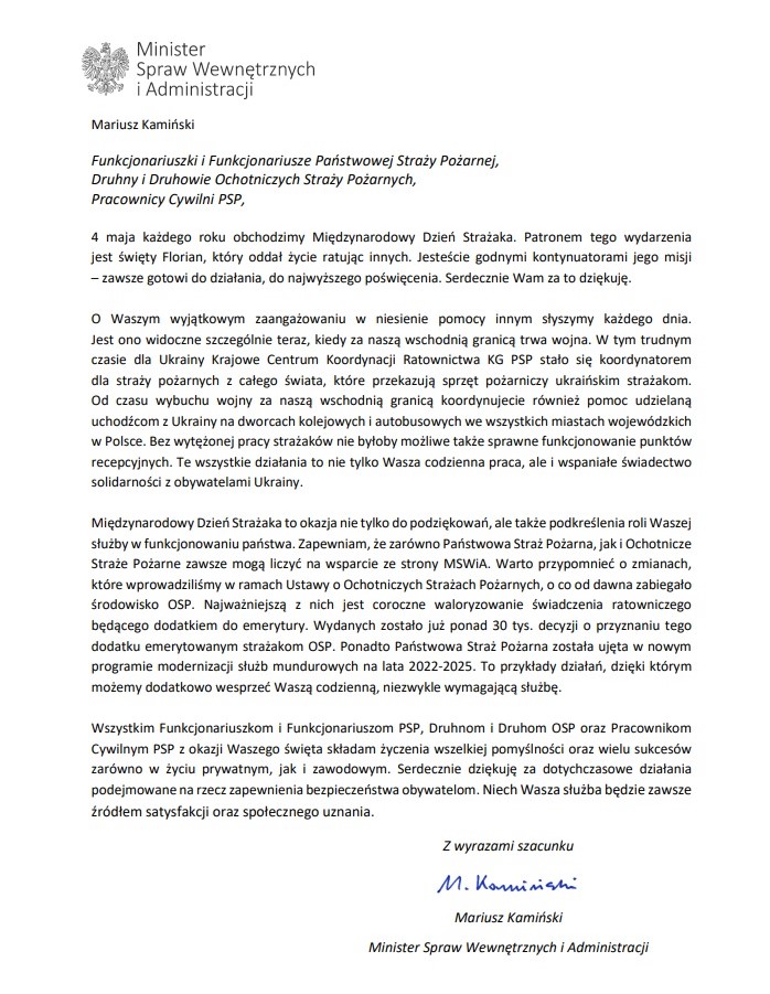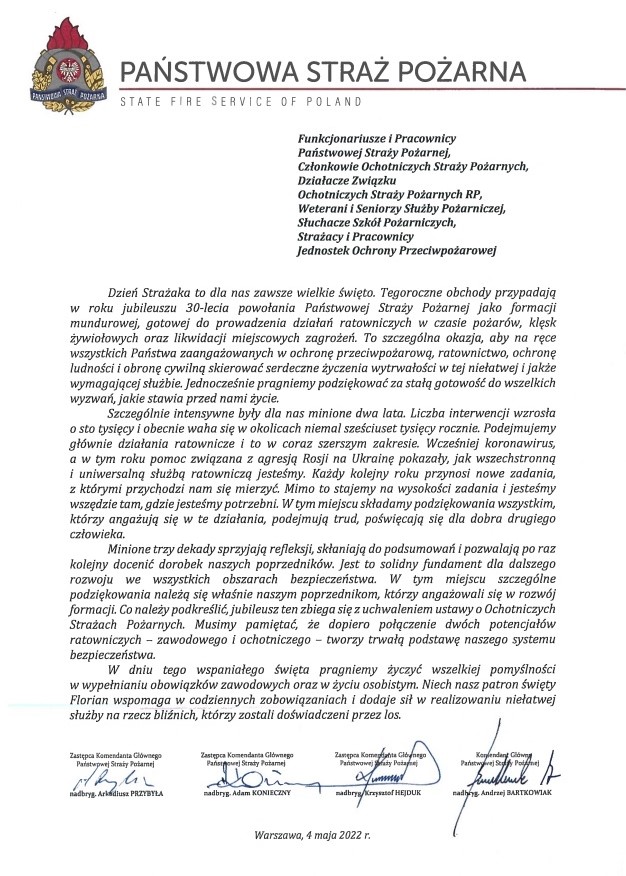 Życzenia z okazji Dnia Strażaka 04.05.2022 Zdjęcia (2) Pokaż zdjęcie 1 z galerii. Pokaż zdjęcie 2 z galerii.