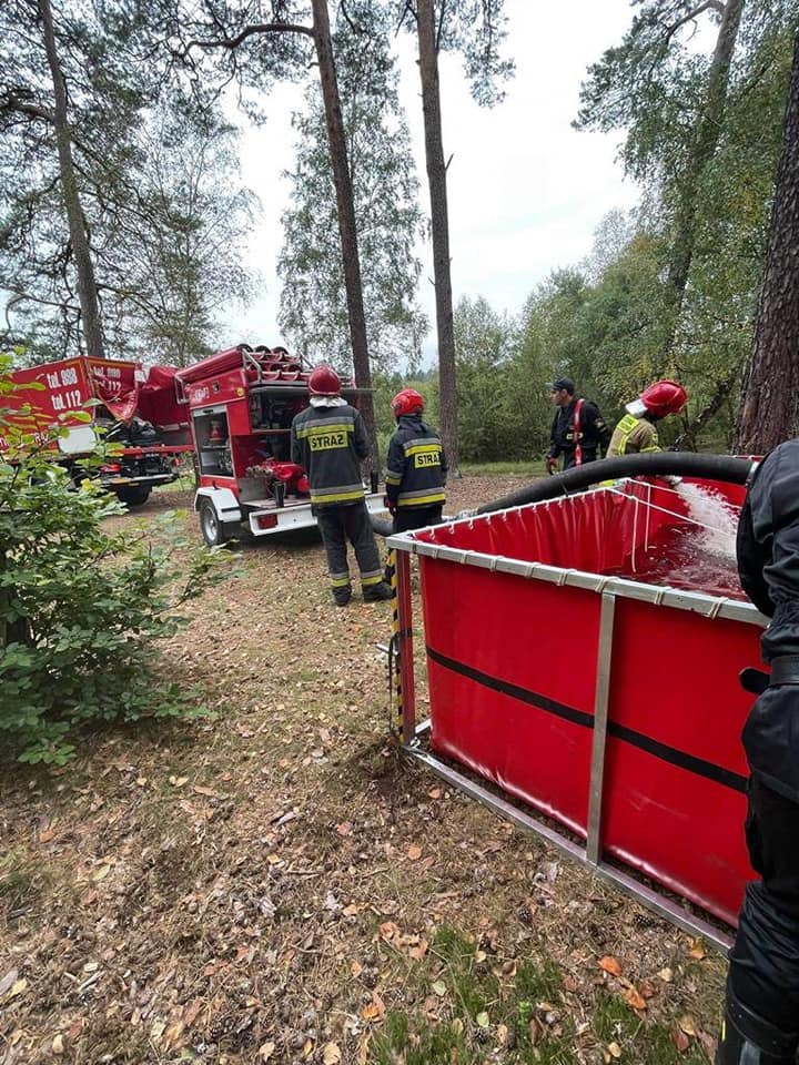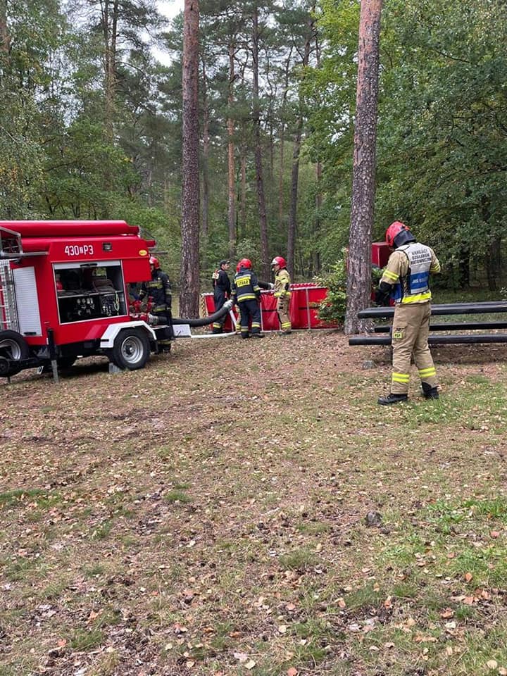 Na ćwiczeniach przeczwiczono element budowy punktu czerpania wody z wykorzystaniem pompy wysokiej wydajności oraz dwóch przenośnych zbiorników na wodę o pojemności 13.000 litrów.