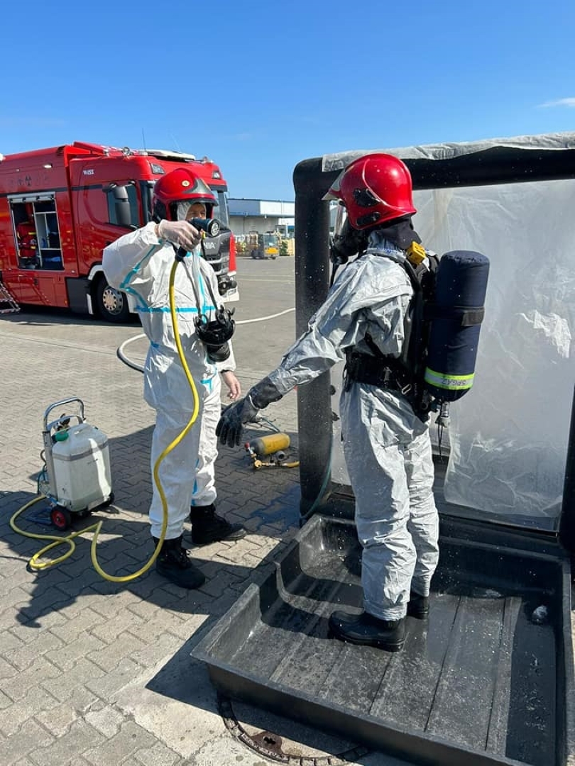 oraz przeprowadzenie dekontaminacji osoby poszkodowanej z udziałem samochodu do dekontaminacji przy zagrożeniach CBRNe (chemicznych, biologicznych, radiologicznych, nuklearnych i wybuchowych). Dodatkowo zastępy miały przeprowadzić dekontaminację rot działających w strefie oraz sprzętu użytego podczas działań.