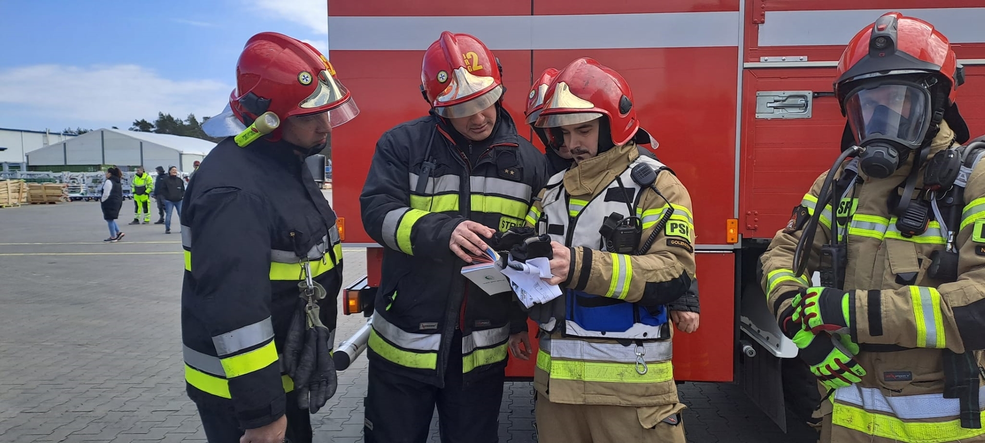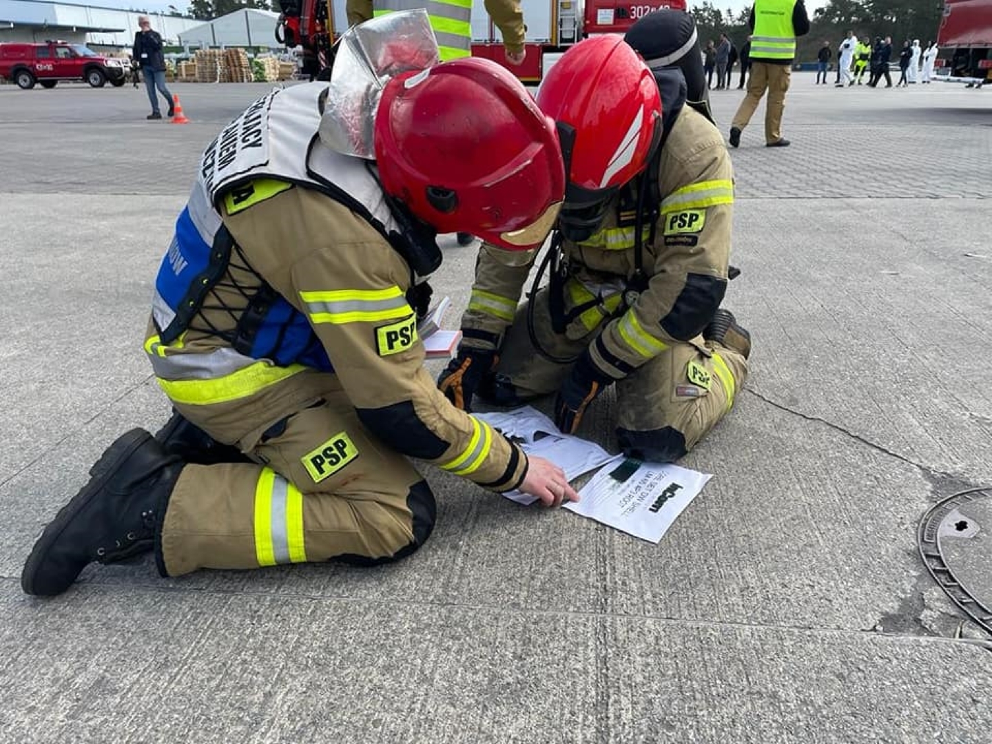 Ćwiczenia wizytował Komendant Powiatowy PSP w Goleniowie st. bryg. Arkadiusz Skrzypczak oraz p. o. Zastępcy Komendanta Miejskiego PSP w Szczecinie mł. bryg. Andrzej Gawlik.
