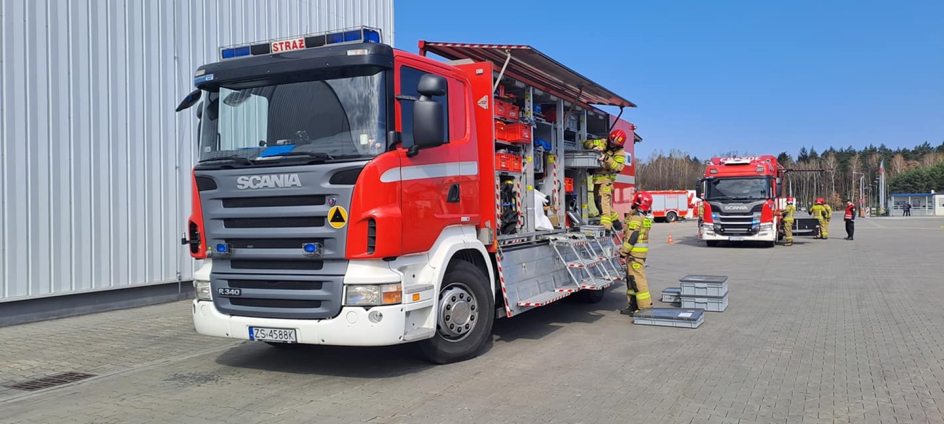 W ćwiczeniach zaangażowanych było 49 strażaków i 17 pojazdów PSP i OSP, w tym m. in.: specjalistyczna grupa ratownictwa chemiczno-ekologicznego z #JRG2Szczecin