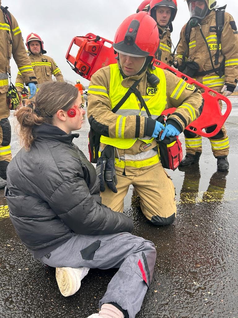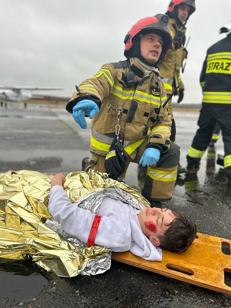 Zadaniem Lotniskowej Służby Ratowniczo-Gaśniczej oraz sił i środków z nią współdziałających było ugaszenie powstałego pożaru i ewakuacja poszkodowanych do punktu medycznego.
