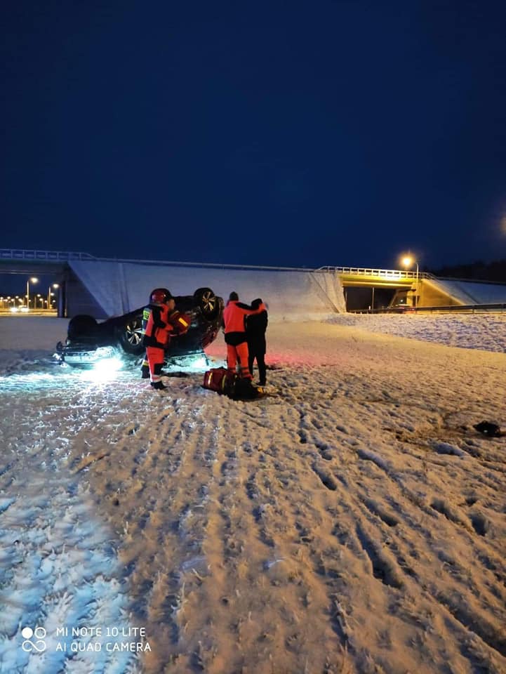 W dniu 04 lutego 2021 r. do Stanowiska Kierowania Komendanta Powiatowego PSP w Goleniowie o godzenie 06:40 wpłynęło zgłoszenie o dachowaniu samochodu osobowego na węźle Goleniów Północ - przecinającym trasy S3 i S6. Pojazdem podróżowała jedna osoba która nie odniosła poważniejszych obrażeń.