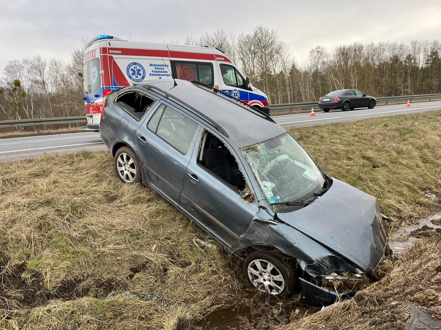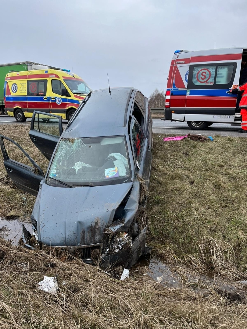 W chwili przybycia pierwszego zastępu na miejsca zdarzenia zastano samochód osobowy Skoda którym podróżowało 5 osób (3 osoby dorosłe i dwójka dzieci). Pojazd zjechał z drogi ekspresowej i wylądował w przydrożnym rowie. W chwili przyjazdu straży pożarnej wszyscy podróżujący byli poza pojazdem. Opuścili go z pomocą osób postronnych które najechały na zdarzenie.