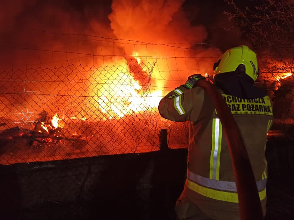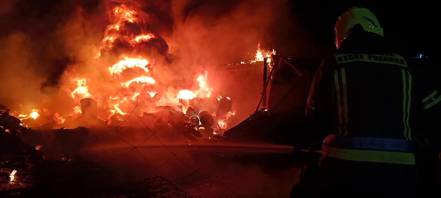 Pożar budynku magazynowego