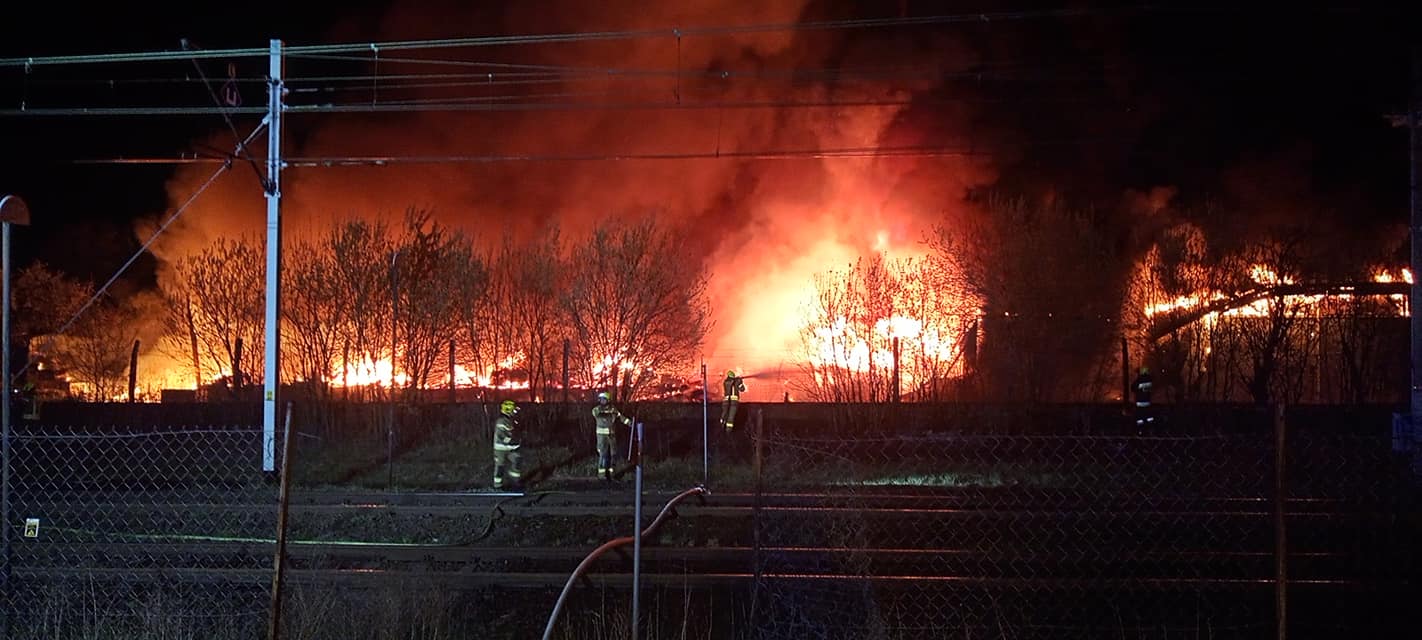 Ze względu na bardzo duże zadymienie na pobliskim torowisku oraz palącą się trawę na nasypach kolejowych w wyniku dużego promieniowania cieplnego oraz powstające wybuchy par cieczy i pyłów składowanych w obiekcie, które stwarzały zagrożenie dla przejeżdżających pociągów podjęto decyzję o wstrzymaniu ruchu kolejowego. Równocześnie dwa zastępy OSP działały w obronie na terenie sąsiedniego zakładu produkcyjnego, w związku z dużym promieniowaniem cieplnym i występowaniem ogni lotnych w bliskiej odległości od palącej się hali.
