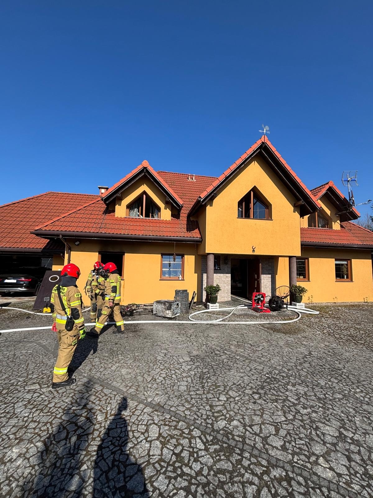 w pomieszczeniu gospodarczym domu jednorodzinnego. W obiekcie na piętrze, znajdowała się jedna osoba nieletnia, którą strażacy ewakuowali z zagrożonego budynku.